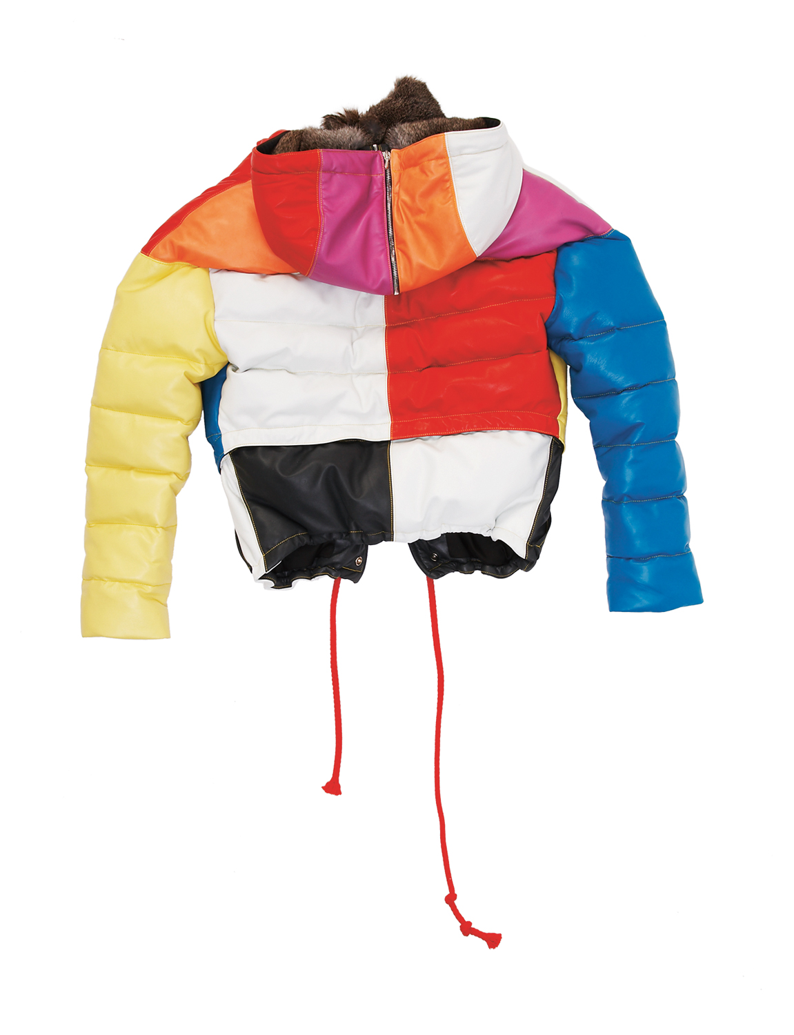 Bunt, wild, farbenfroh, frisch, zeitgenössisch und aussergewöhnlich. Schlagwörter, welche einem auf Anhieb in den Sinn kommen, wenn man die Kleidungsstücke von Joy Ahoulou vor sich hat. Ausgehend von seinem Idealbild eines jungen Mannes an der Schwelle zum Erwachsenwerden, hat der Modedesigner Kleider für Männer entworfen, welche einerseits dem Hedonismus und der Freude am eigenen Körper frönen, andererseits aber auch von einer gewissen kindlichen Naivität geprägt sind. Ein Zustand, den Joy Ahoulou jedoch liebevoll ironisiert, wenn er Klassiker wie beispielsweise das Poloshirt leicht verfremdet, die Bomberjacke neu zusammensetzt oder im Ensemble aus Hose und Jacke, gefertigt aus dem Stoff mit den Prints von Monika Stalder, Affen und Vögel aus dem Dschungel hervorlugen lässt. In den Fotografien des Lookbooks kommt der Zwiespalt zwischen selbstbewusstem Handeln und naivem Begehren sehr gut zum Ausdruck. Die jungen Männer strahlen eine eigenartige Mischung aus Verlorenheit, Unwohlsein und Selbstbewusstsein aus. Ahoulou ist es gelungen, mit seiner Kollektion genau diese Gefühle einzufangen und durch seine Kleidungsstücke sichtbar zu machen.