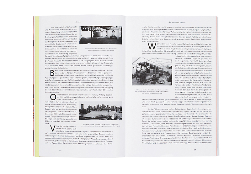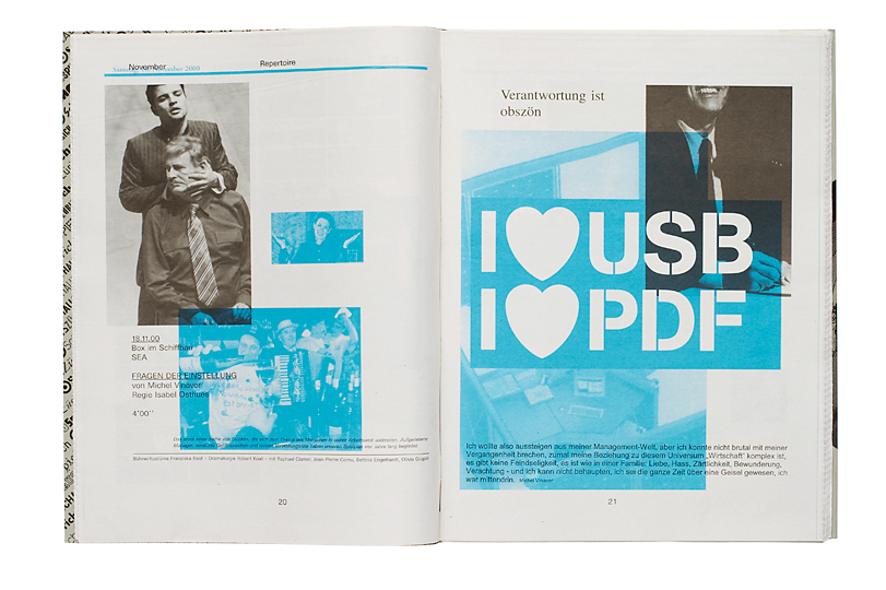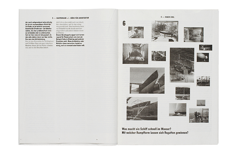 Sieben facettenreiche Publikationen hat Alex Trüb für den diesjährigen Wettbewerb eingereicht; die Ausbeute der letzten vier Jahre. Die Bücher sind nicht nur schön anzuschauen, sondern erlauben auch einen Einblick in die Arbeitsmethodik. Das Weiterentwickeln von gefundenen Strukturen, das Reagieren auf Widerstände und das Suchen von passgenauen Lösungsansätzen zeichnen die Arbeitsweise des Grafikers ebenso aus wie die totale Hingabe an die typografischen Details. Als Kondensat seiner dreijährigen Tätigkeit für das Schauspielhaus Zürich steht 'O.T. Ein Ersatzbuch'. Als Grundstruktur für die Rückschau dient die chronologische Aneinanderreihung von Fotografien typischer Bühnensituationen. Konfrontiert mit je einer Bildseite aus der Pendlerzeitung '20 Minuten' werden vier Jahre Theater unter der künstlerischen Leitung von Christoph Marthaler auf einzigartige Weise in einem öffentlich-aktuellen Referenzraum wahrnehmbar. Maximale Klarheit bei grosser Heterogenität bietet auch 'Bekanntmachungen', ein Ausstellungskatalog, welcher das umfangreiche Bild- und Textmaterial der Ausstellung '20 Jahre Studiengang Bildende Kunst SBK der Hochschule für Gestaltung und Kunst Zürich' in der Kunsthalle Zürich archiviert und 'Cneai=neuf ans', eine Dokumentation, welche die Aktivitäten und Publikationen der letzten neun Jahre der Pariser Kunstinstitution Cneai umfasst. Gerade bei solchen Mammutprojekten, die eine Menge Zeit, Einsatz und Energie benötigen, versteht es Trüb aufs Vortrefflichste, eine Unmenge an Materialien und Ideen in einer kohärenten Grundstruktur unterzubringen, die zwar schnell erkannt und gelesen werden kann, aber immer wieder – wunderbar irritierend – durch leere Seiten oder kleine Regelabweichungen aufgebrochen wird. Trifft der trickreiche Gestalter auf Grössen wie Peter Saville oder Marc Camille Chaimowicz, ist der gestalterische Höhenflug nur noch Formsache. Die Jury zieht ob der ausserordentlichen Leistungen und der geballten Ladung Kreativität beeindruckt den Hut: Chapeau!