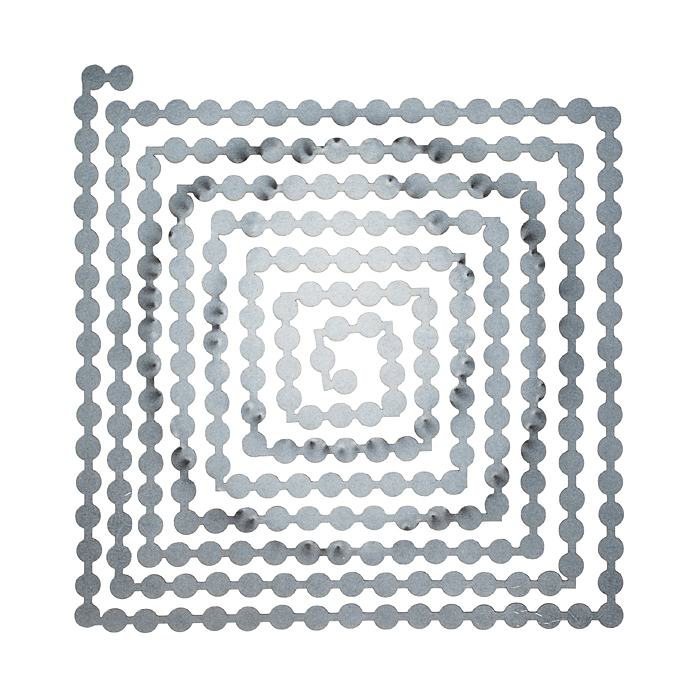 Die Kette aus Silikon ist ein Werk, dem man sich langsam nähert. Der Prozess des Herausschälens, das behutsame Entdecken des Schmucks ist so gewollt. Geduldig trennt man aus einer Art Silikonblatt die stilisierte Perlenkette, welche mit einem Lasergerät ausgefräst wurde, heraus, um sie sich dann anzueignen.