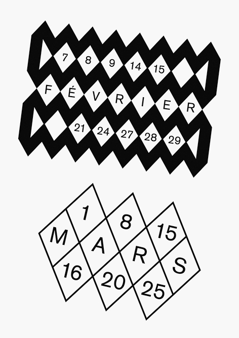 Als Auftragsarbeit entstanden in Zusammenarbeit mit Mélodie Mousset die zweimonatlich erscheinenden Plakate, Programme und Booklets für 'Rue du Nord' in Lausanne, einem Ort, der Veranstaltungen zu experimenteller Musik organisiert. Durch das ganze Druckprogramm ziehen sich als zentraler Punkt der Gestaltung sich wiederholende grafische Muster, mit welchen Tatiana Rihs einen hohen Wiedererkennungswert für den Veranstaltungsort erzielt. Die rhombenartige Zick-Zack-Form wird immer wieder anders verwendet und so schafft die Grafikerin immer wieder andere Informationsträger.