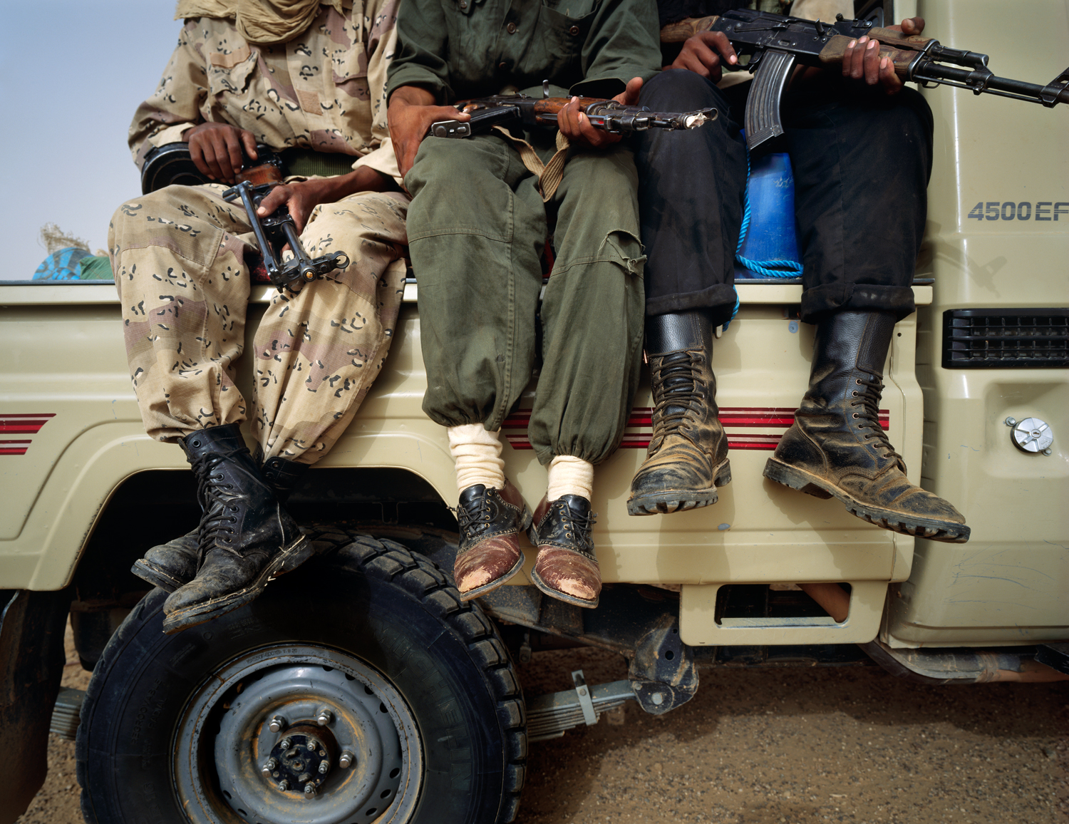 Wie kann man das Leben der Rebellen im Sahel adäquat dokumentieren? Mit den Mitteln der klassischen Reportagefotografie nähert sich der Lausanner Fotograf Philippe Dudouit einem Landstrich, der zu den ärmsten und unwirtlichsten Gegenden der Welt gehört. Sein Fotoprojekt nennt er 'Sahel – The Dynamics of Dust'. Im Jahr 2008 verbrachte er drei Monate mit Tuareg-Rebellen im Norden von Mali und Niger und kehrt seither ab und zu in diese Gegend zurück – das Projekt ist ein Work in Progress. Dudouit bringt eindringliche Bilder aus einer vergessenen Konfliktzone mit. Als die ehemaligen Sahelnomaden sesshaft wurden, nahm der Waffen- und Drogenschmuggel überhand. Zuletzt ist auch noch der Tourismus fast gänzlich eingebrochen; radikale islamische Gruppen rekrutieren in diesen Gegenden ihren Nachwuchs, Rebellengruppen kämpfen gegen die Zentralregierungen von Mali und Niger. Philippe Dudouit vermeidet es, dem Reiz des Exotischen zu erliegen und schafft stille, unspektakuläre Bilder: Ein Flugzeugwrack in der Sandwüste, ein umgestürzter Turm, der bereits zur Hälfte im Sand versunken ist, ein gestrandeter Schützenpanzer im Hof eines Gebäudes, daneben bewaffnete Soldaten. Dudouit porträtiert auf behutsame Art und Weise die Menschen, oft sind es Kinder und Jugendliche. Ein junger Mann posiert stolz in einem rotbraunen Batikgewand, trägt einen beigen Turban und weisse Plastiksandalen. Das Bild ist eigentlich unspektakulär. Erst auf den zweiten Blick wird ein grüner Armee-Beutel auf der Brust des jungen Mannes sichtbar, der wohl Munition enthält. Ein anderes Bild zeigt Mohammed, einen jungen Mann mit grünem Turban, blauen Flip-Flops, rot-orangem T-Shirt mit dem Aufdruck 'King's County'. Er – und auch dies erblickt man nicht sofort – hält eine Kalaschnikow in den Händen. Er bezeichnet sich als 'selbstständig erwerbend' und lebt im Norden von Niger, in einer Rebellen- und Bürgerkriegszone, die vom Westen weitgehend ignoriert wird. Die Bilder des an der Fotoschule in Vevey ausgebildeten Fotografen sind still, aber einprägsam. Sie bleiben in unserem Bildgedächtnis haften.