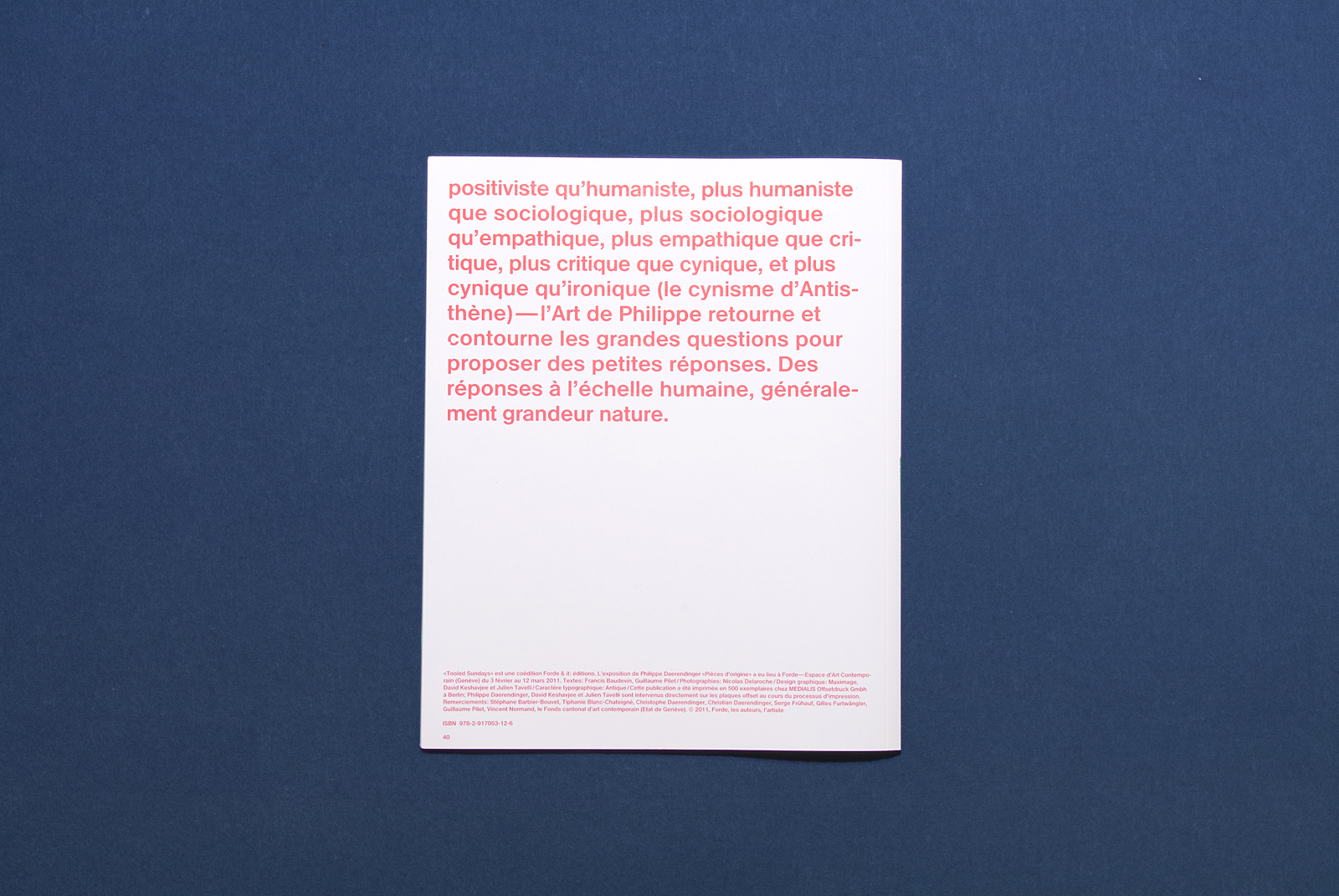 Wie kann man im Offsetdruck High- und Low-Tech kombinieren? Die Lausanner Grafikdesigner David Keshavjee und Julien Tavelli dekonstruieren die Offset-Technik und entwickeln daraus eine eigenständige Handschrift. Ihre Recherchen bezeichnen sie als 'Super Lithografie – Experiences in Offset Printing'. Das kreative Duo arbeitet seit ihrem Diplom an der ECAL im Jahr 2008 zusammen. Was sie auszeichnet ist ein handschriftlicher Stil und eine zum Teil extrem bunte Farbpalette. Heute geschieht Offsetdruck in der Regel im 'Computer to plate'-Verfahren, bei dem die Druckplatten direkt nach der Vorlage im Computer erstellt werden. Keshavjee und Tavelli arbeiten gerne in der Druckerei und legen Hand an die Druckplatten: Sie kombinieren Computerentwürfe mit manuellen Eingriffen direkt auf der Druckplatte, wo sie chemische Entwickler, Gravuren, Fotokompositionen oder Markierungen mit Wärme einsetzen. Für eine Auftragsarbeit, die Plattenhülle der Band 'Honey for Petzi', hatten sie nur die Typografie auf dem Computer entworfen. Alles andere entstand in Handarbeit, nach dem Prinzip der Addition und Substraktion von Offsetfarbe auf vier quadratischen Flächen. Der Kontrast zwischen Computertechnologie und Eingriffen in Handarbeit schafft eine innovative und eigenständige Sprache. Manchmal verzichten David Keshavjee und Julien Tavelli auch ganz auf den Computer. In reiner Handarbeit ist ihre freie Arbeit 'Les impressions magiques' entstanden. Die Zeichnungen wurden mit Chemikalien direkt auf der Offset-Platte gemacht. Alle Entwurfschritte waren nicht mehr rückgängig zu machen: Der Zufall spielt eine entscheidende Rolle. Die Arbeit des Gestalterduos ist eigenwillig und kompromisslos. Sie ziehen Gewinn aus ihren Recherchen über manuelle Bearbeitungsprozesse, spielen gekonnt mit dem Gegensatz zwischen der Präzision des Entwurfs auf dem Computer und der Rohheit der manuellen Intervention: Es entstehen magische Drucke.