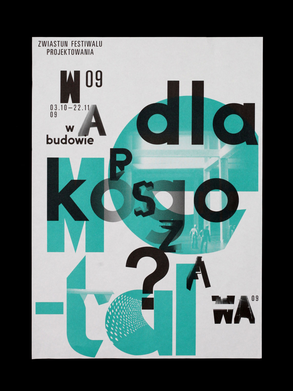 Um einen Bogen zwischen Museum, Stadt und Festival zu spannen, hat Balland sich dafür entschieden, eine charakteristische Schrift zu wählen. Als Basis diente die Schrift, die in Warschau überall für die Signalisation und Schilder gebraucht wird. Die beiden Erscheinungsbilder des Festivals von 2009 und 2011 bleiben unabhängig.