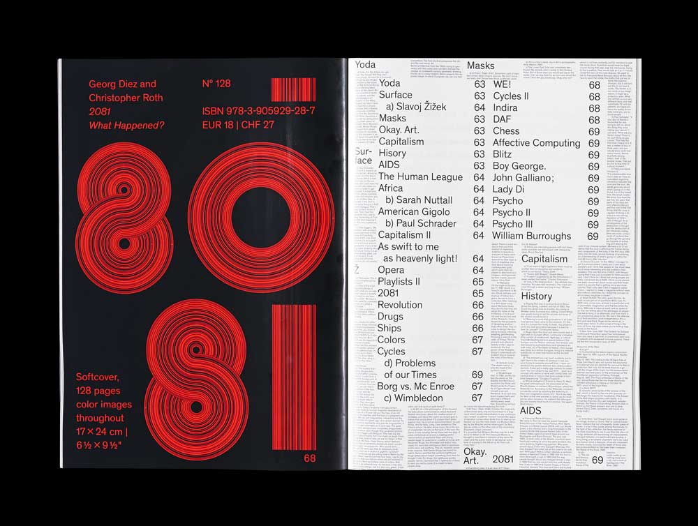 In der Gestaltung der visuellen Identität findet sich der Strichcode als markantes wiedekehrendes Element. Ein technisches Detail, das im Buchhandel und -vertrieb eine wichtige Rolle spielt, weil der ISBN-Code der digitalen Information eines Buches entspricht. Farbcodierungen und Barcodes werden in der hier prämierten Arbeit als humorvoll spielerisches Stilmittel und zugleich zur Strukturierung und Gestaltung unterschiedlicher Formate verwendet, wie beispielsweise in Postern oder einem Magazin mit Künstlerbeiträgen. Diese Gestaltungsmittel, die sich stark am technischen Aspekt des Drucks und der Produktion orientieren, zeigen wie wichtig den Gestaltern die Nähe zum Buch als Objekt ist.