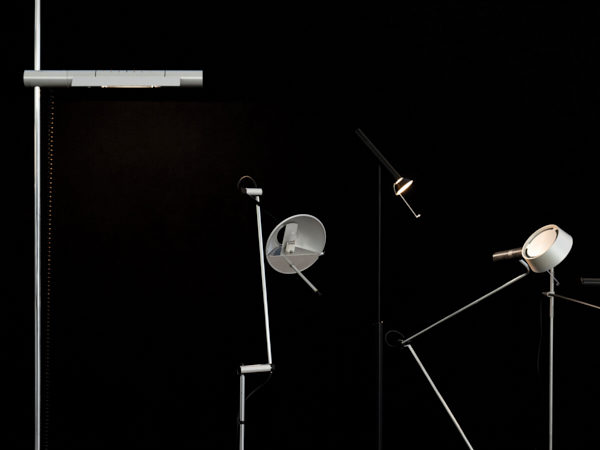 Ihre erste Leuchte gestaltete Rosmarie Baltensweiler zusammen mit ihrem Ehemann Rico im Jahr 1951. Denn es fehlte ein passendes Exemplar für die eigene Wohnung. Mit ihrem schwarz-weissen Kopf, dem schweren Metallfuss, den schlanken Chromstangen und sechs Bewegungsachsen liess sich die selbstkonstruierte Stehleuchte in alle Richtungen recken und strecken und so an unterschiedliche Umgebungen und Verwendungen anpassen. Heute Deckenfluter, morgen Leselampe.