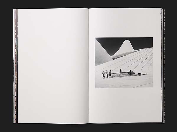 Das grossformatige Buch des Schweizer Fotografen-Duos Taiyo Onorato und Nico Krebs ist derart sorgfältig editiert und ausgereift, dass Werk und Gestaltung geradezu symbiotisch zusammenspielen. Die Fotos sind meist randabfallend auf einer oder zwei Seiten platziert, nur gelegentlich bleibt eine Seite leer. Die meisten Aufnahmen entstanden innerhalb von vier Jahren auf Reisen in einem Dutzend ehemaliger Sowjet-Republiken. Im Fokus stehen Landschaft und Architektur, doch durch gelegentliche rätselhafte Situationen und einige Sequenzen mit wiederholenden Close-ups auf Gesichtern entsteht auch der Eindruck einer wortlos erzählten Geschichte. Ausklappbare Seiten werden zur Wiedergabe grosser Querformate genutzt. Die ebenfalls ausklappbaren Umschlagseiten sind innen goldig verspiegelt, und auf die hintere ist mit Heissfolie der einzige Text des Buches, das umfangreiche Impressum, geprägt. Das Gold wirkt grosszügig und bietet einen Spiegel für die fotografierten Landschaften. Ein derart raumgreifendes Buch braucht auch in der Herstellung viel Platz und kann kaum allein am Rechner konstruiert werden.
