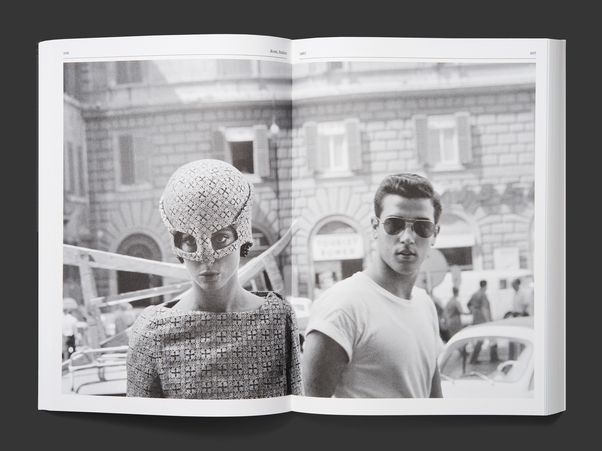 Ein mehrheitlich schwarzweisses Fotobuch mit Softcover präsentiert auf über 350 Seiten das Lebenswerk der Fotografin Pia Zanetti (*1943) als faszinierende Reise durch die Zeit und die Welt. Die grossen Bilder erscheinen meist einzeln oder zu zweit auf einer Doppelseite mit regelmässigen weissen Rändern. Sie sind ohne Kapiteleinteilung oder thematische Gruppierungen strikt chronologisch von 1961 bis 2017 angeordnet. Am oberen Rand stehen Ort und Datum, und kurze Erläuterungen der Fotografin, die entweder neben oder unter den Bildern stehen, sind die einzigen Texte im ganzen Buch. Das Material ist äusserst zugänglich präsentiert und kommt ausgezeichnet zur Geltung – als wären die Fotografien auf einem Archivtisch zum Stöbern ausgelegt und die Stimme der Fotografin würde sie kommentieren. Das hellgraue Papier trägt zur unprätentiösen Atmosphäre bei, während auf brillante Bildqualität verzichtet wird. Der charmante Umschlag zeigt die Fotografin 1967 von ihrem Ehemann porträtiert und verwendet dazu eine gezeichnete Titelschrift, die auf Magazine aus derselben Zeit verweist.