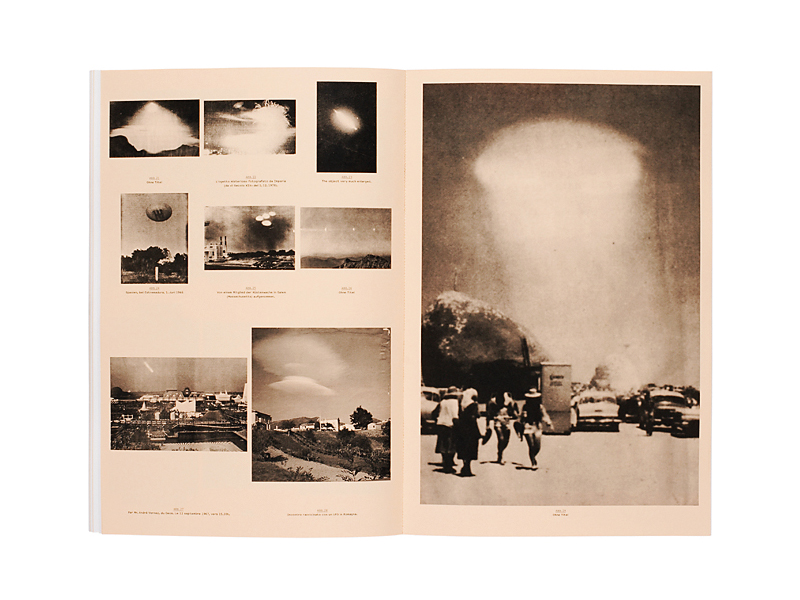 Katja Naima Schalcher has successfully made an existing archive visually powerful, complementing the topic with current reflections and information and to presenting parts of the archive in a new, concentrated order. The publication with the varied page design that reveals all kinds of extraterrestrial trivia is captivating. Modern myths' typical development process is lent visual force in the course of the publication by increasingly blown up UFO pictures. By analogy with this, the nightmarish conspiracy topic takes up more space from page to page and inevitably captures the reader.