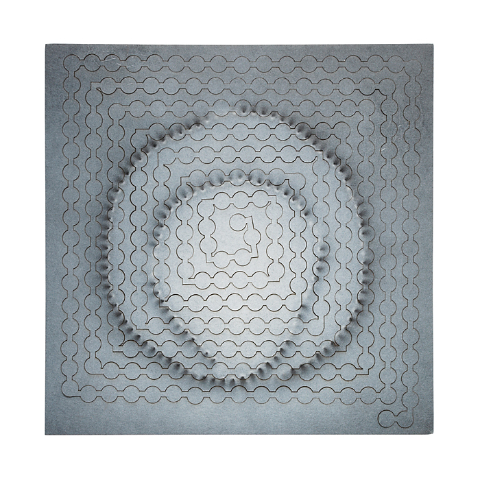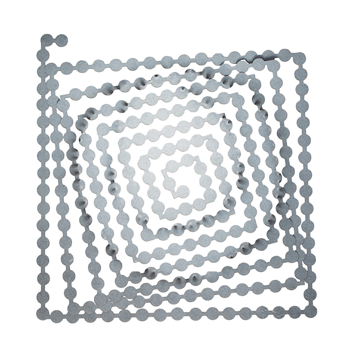 The silicone necklace is a work you approach slowly. She deliberately chooses a peeling process, where you cautiously discover the jewellery. One patiently detaches the stylized pearl necklace, milled out with a laser, from a kind of silicon leaf, and then gets hold of it.