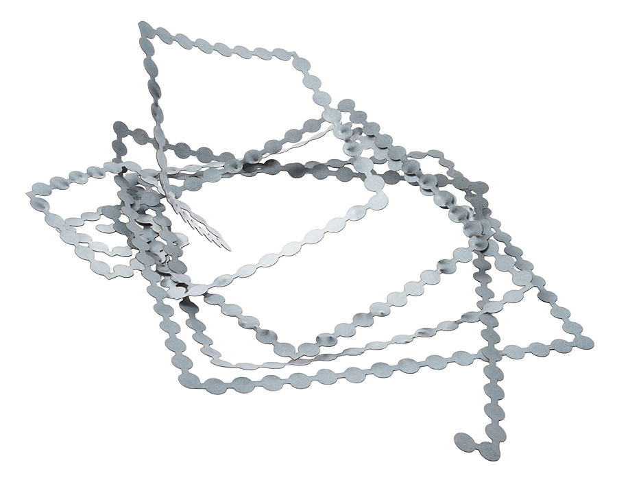 Julie Usel's award-winning works all centre around the theme of 'pearls', 'pearl necklace'. She fans out the different traditional connotations of a pearl necklace – middle-class status symbol, classic women's jewellery, appearance and reality – while at the same time undermining them by experimenting with materials and techniques that obviously don't fit this image.