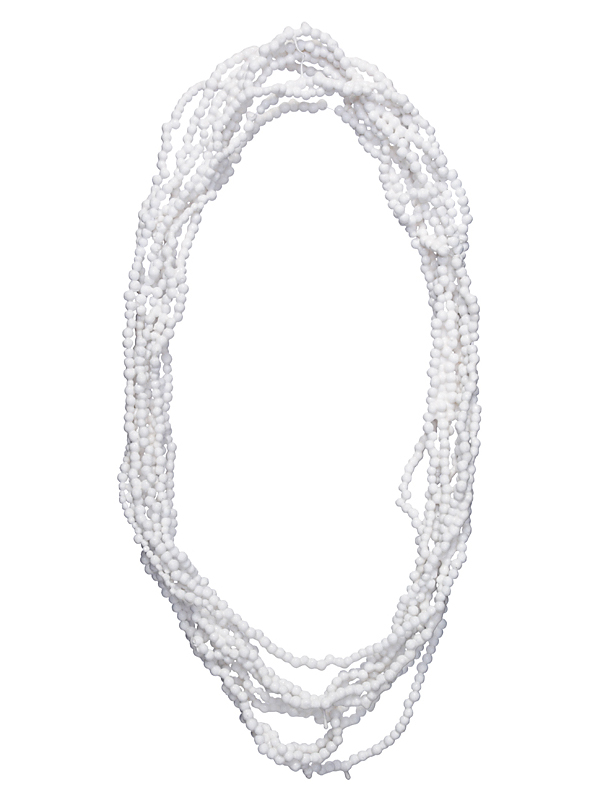 Julie Usel controls has mastered the art of subtly shifting our perceptions and views, and makes a tongue-in-cheek reference back to the pearl necklace. This shift in perception in relation to weight, density and value touches upon the issue of our relationship to jewellery in a tangible, focussed and sustainable manner.