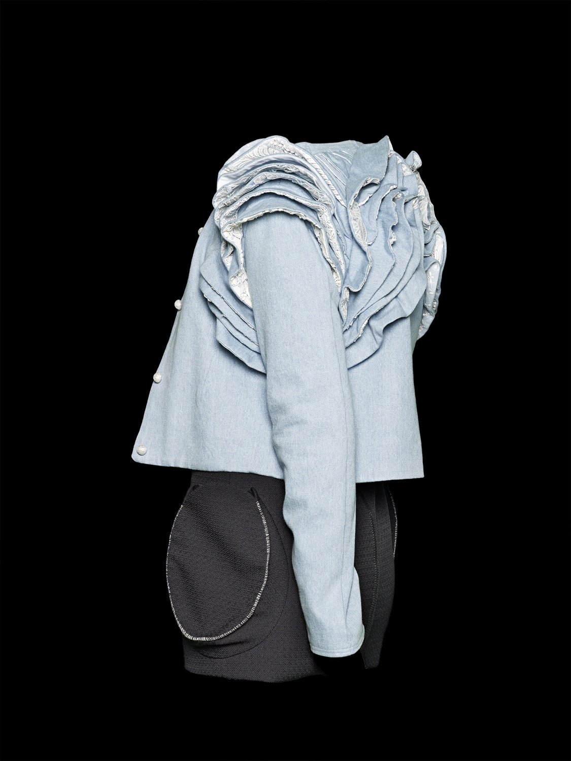 The talent of this young designer is evident in many of his pieces as well as in his reflections on the female body. For instance, he emphasises the shoulders of a jacket with wavy, lace-lined tucks or places pockets on the hips of a dress. Those pockets, incidentally, also serve as a place for Geraldine, the library assistant from Paris, to put her books. In his functional, tailor-made designs, Forlin cleverly combines the personality and lifestyle of the women who wear them.