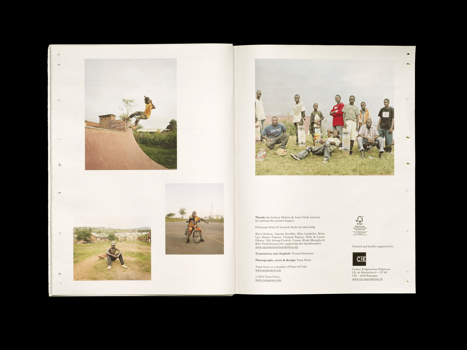 It was not until his second visit to Kitintale that he created a series of photographs about the skaters and their park. For Yann Gross, the approach of the photographer is important. He does not start taking photographs the moment he arrives somewhere, but spends time there first and only gets to work later, when he has reflected on what he has seen. He dislikes the post-colonialist attitude of many photojournalists who briefly visit a place, take their photos and leave. His approach is more long-term. It is important to him to show photographs of life in Africa that do not reiterate the same familiar media reports of poverty, hunger and war. He still keeps in touch with the people of Kitintale and is considering getting involved in a social project there.