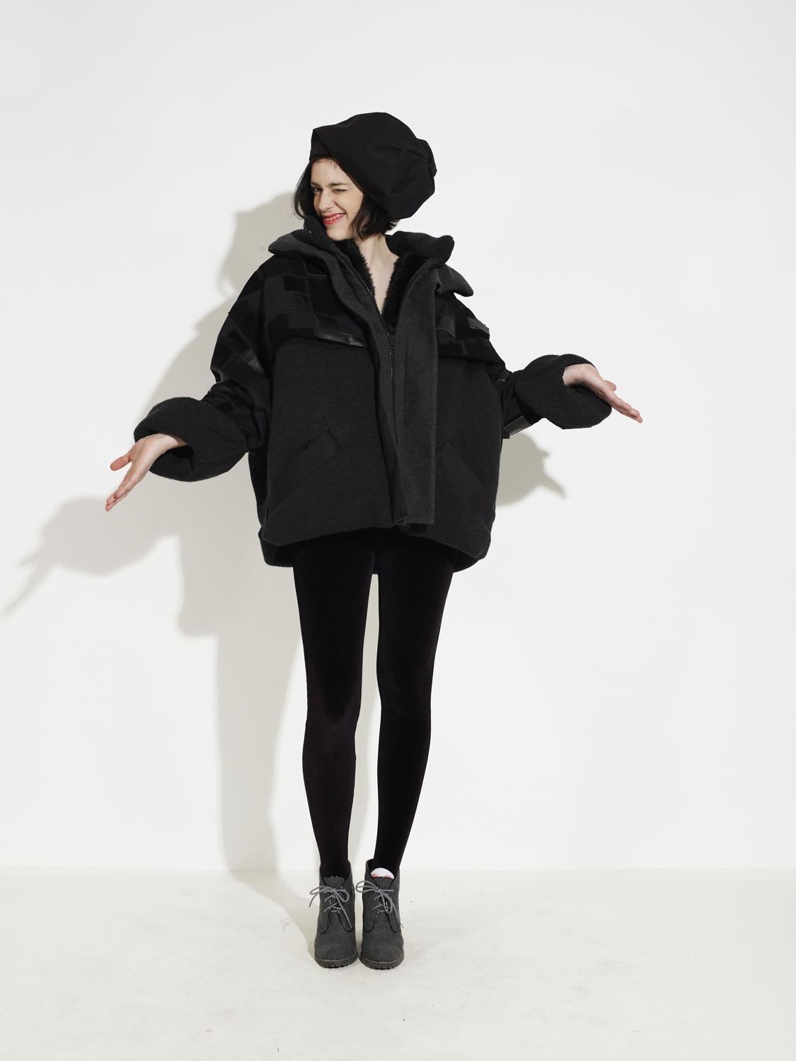 Why do older people dress so differently from the young? The Basel fashion designer Sara Vidas demonstrates that older people are generally bold enough to be different and to demonstrate a mind of their own. She suggests this may be due to having saved many beloved items of clothing in the course of their lives. For the women's collection 'Lili', her diploma project at the Hochschule für Gestaltung und Kunst in Basel (FHNW), she carefully studied how older people dress. She tried out her designs on both younger and older women and ended up creating 10 outfits that clearly subvert conventional expectations. Her models are both young and self-confident older women. The designs cleverly toy with a certain sense of propriety that contrasts with a somewhat disconcerting range of colours. An oversized loden coat, for instance, is green, blue and brown with chequered inserts. Young or old, it still takes courage to wear a coat like this. Another almost grotesquely oversized coat has conspicuous, L-shaped black-and-white patterns that are reminiscent of op art. The designs are not elegant in conventional terms, nor are they anti-design: Vidas's collection is somewhere in between. She makes especially striking use of materials like varnish foil, polyester, velvet, jersey, mohair, loden, rabbit fur, lambskin nappa and tweed. She cultivates dashing, immoderate patterns: tiger shoes and gloves compete with chequered stockings and a blouse with a chequered collar. Her designs oscillate between attraction and repulsion, and her imaginatively bold 'Lili' collection is peppered with surprising details.
