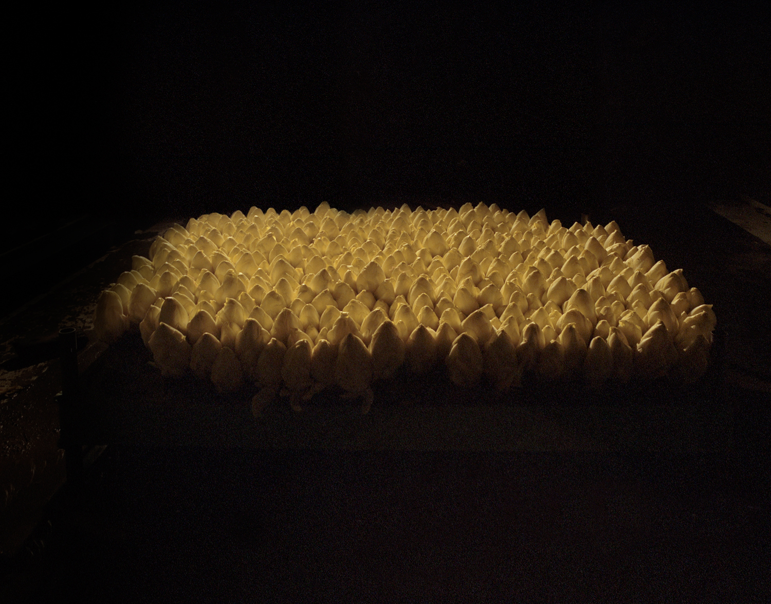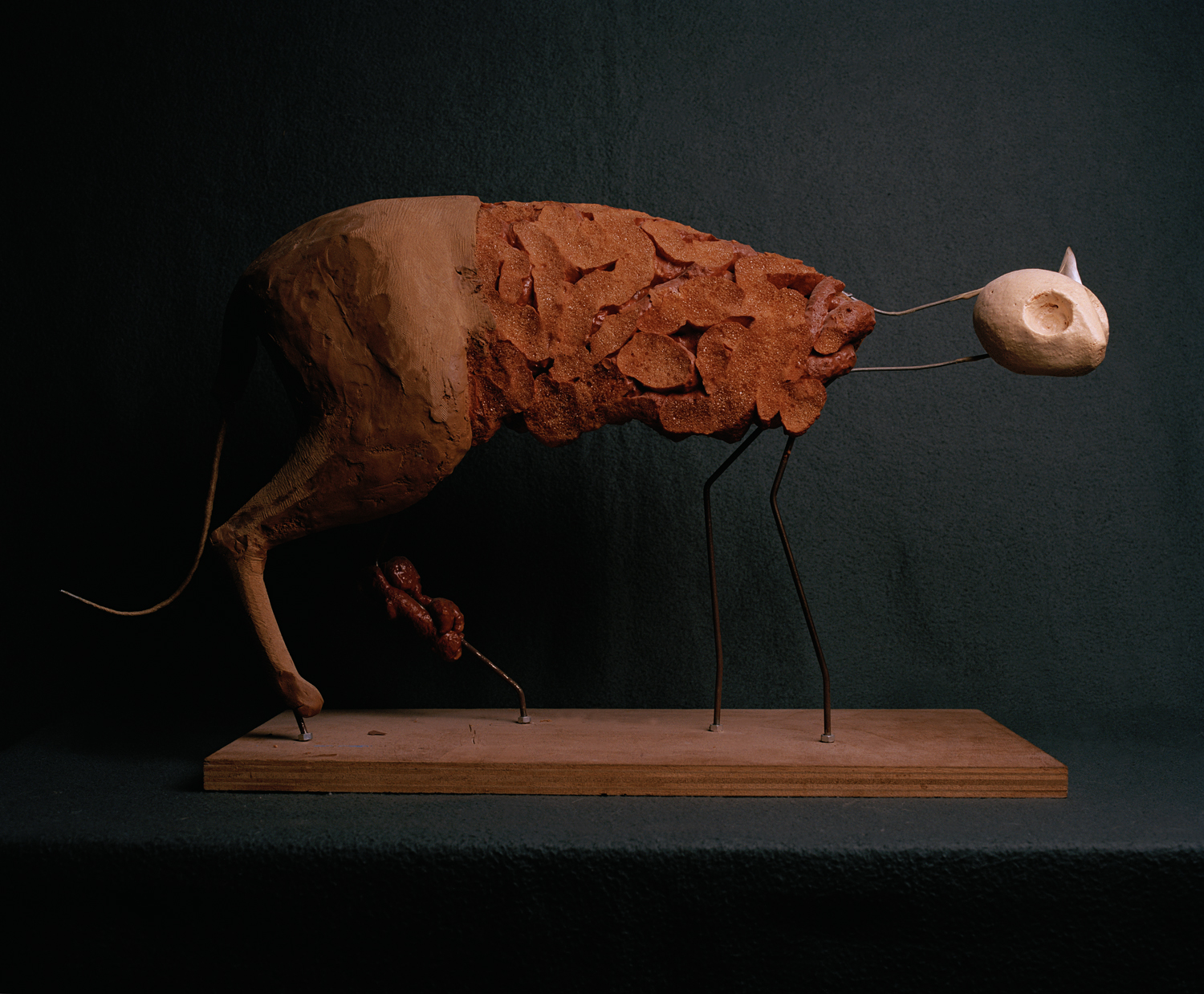 How does one combine very different photographic images? The Lausanne-based designer Olga Cafiero completed her master's degree in Art Direction at the ECAL in 2011. In her work 'Curioso', she follows the principle of the curio cabinet. Just as in an encyclopaedia, a collector brings together very different objects. Since these are combined according to his taste, interests and passions, collecting is a very subjective undertaking which creates a personal and often even magical world. In changing combinations, Olga Cafiero shows her photographic works: very colourful plant images, huge machines, portraits, mysterious animal skeletons partially covered with a white cloth, a grotesque monkey head made of plaster with its mouth wide open, a table lamp. The atmosphere of the individual photographs is very different: it varies from banal and down to earth to uncanny. Through her very personal way of hanging the photos, Olga Cafiero aims to bring about an encounter between the world of science and that of magic. Science and magic, which used to be closely related but were increasingly separated from each other in the course of history, come face to face in her assemblages. Olga Cafiero writes that with her mixture of architectural photos, still lifes and documentary photography, she questions photography as such. Her chief motive is her curiosity, and it is precisely this curiosity that she would like to arouse in the viewer. Taking a close look and playing guessing games pay off for the viewer: what do the extremely sober, clinically clean pictures of production facilities have to do with portraits whose lighting is reminiscent of Renaissance painting? Cafiero sharpens our eye for strange details: why are the buttons and hoses in her pictures of machinery so colourful? In her visual cosmos, Olga Cafiero is looking for 'subliminal' tensions and connections between individual images.