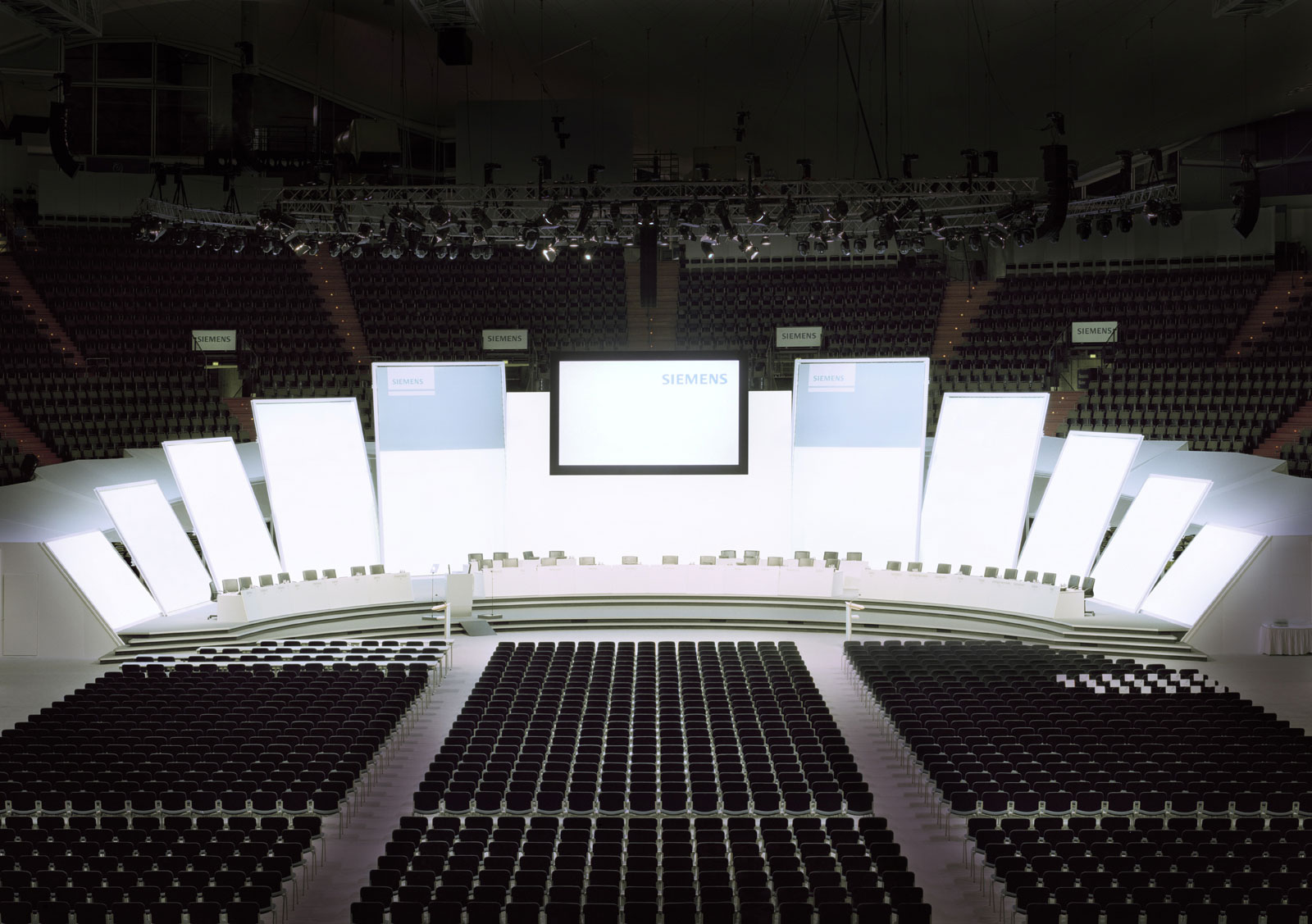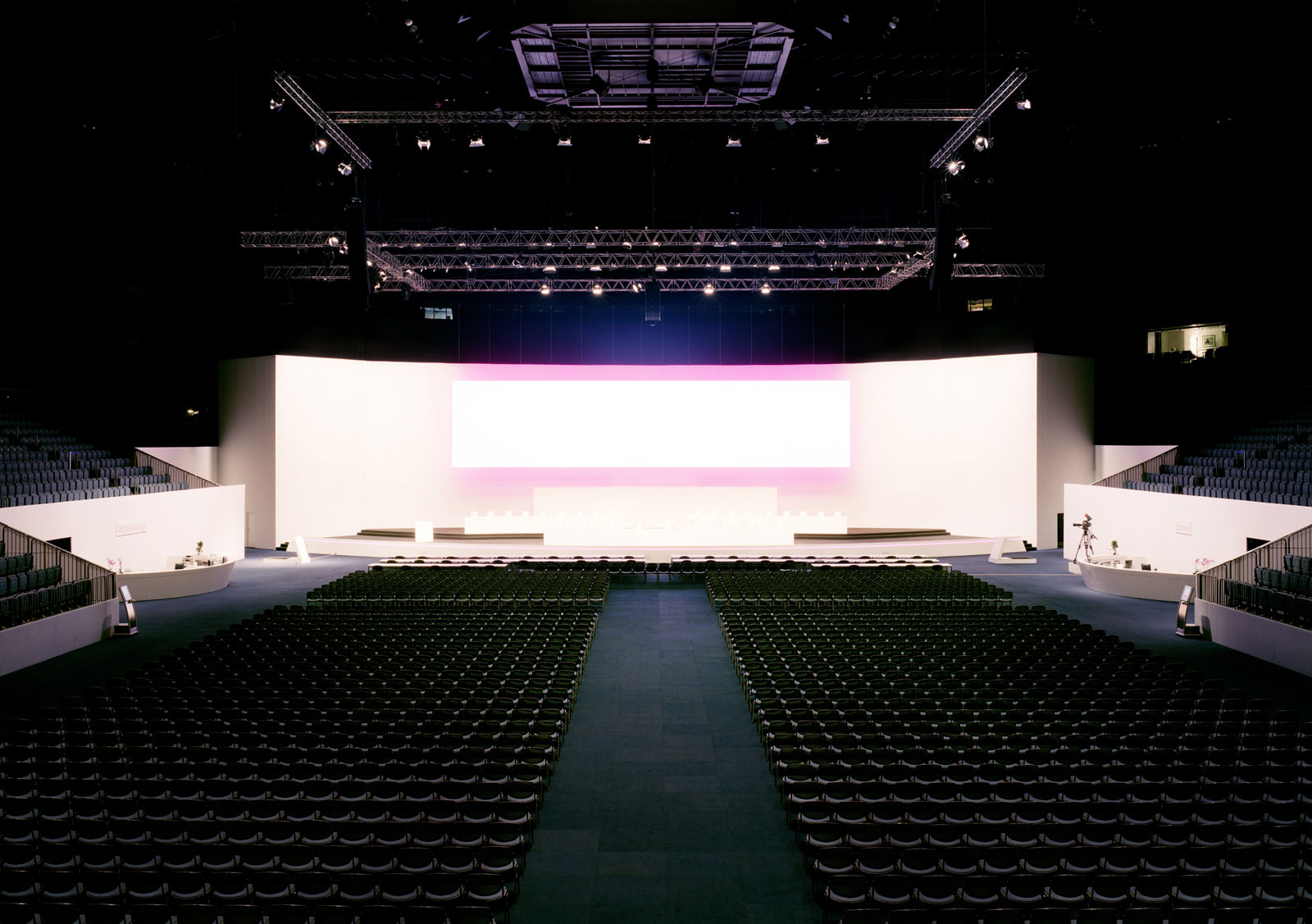 In his 'Meetings' project, Cyril Porchet shows us a series of large-format photographs of the exhibition halls or lecture halls used to host the shareholders' meetings of major companies, taken shortly before the events begin.