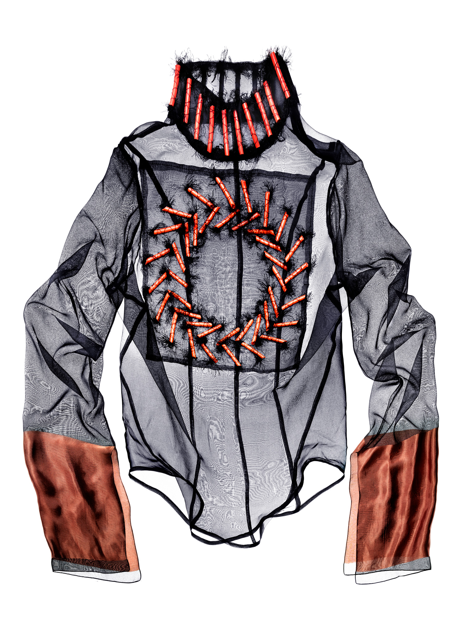 By critically questioning the ways of the fashion world, Rafael Kouto creates a new frame of reference within which he is able to develop his own signature design language. He lends his one-of-a-kind pieces bold colors, forms, and prints that reflect his personal experience of straddling two different cultures.