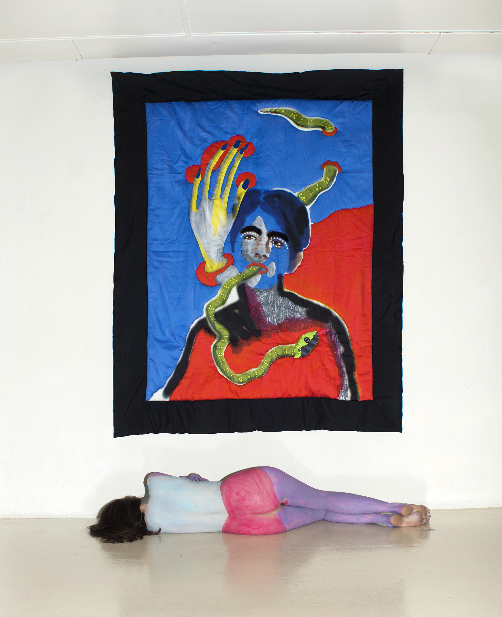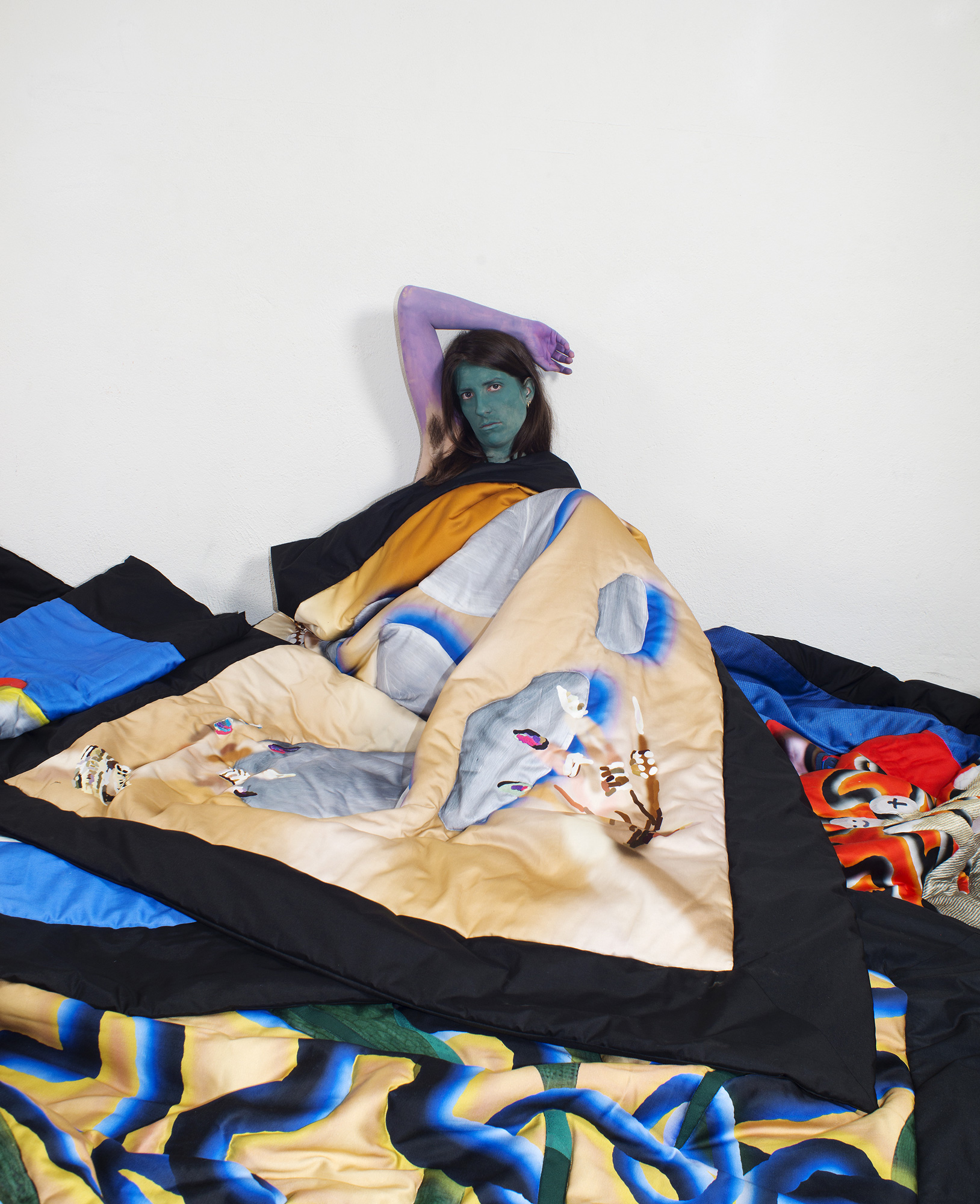 Xénia Lucie Laffely's mysterious visual language at once enlightens and fogs our senses. Her quilts - which can serve either as bedspreads or tapestries - are appealing and yet somehow disturbing as well. She devotes deep contemplation to their making, reaching bold decisions and creating a tension between modern digital techniques and traditional craftsmanship.