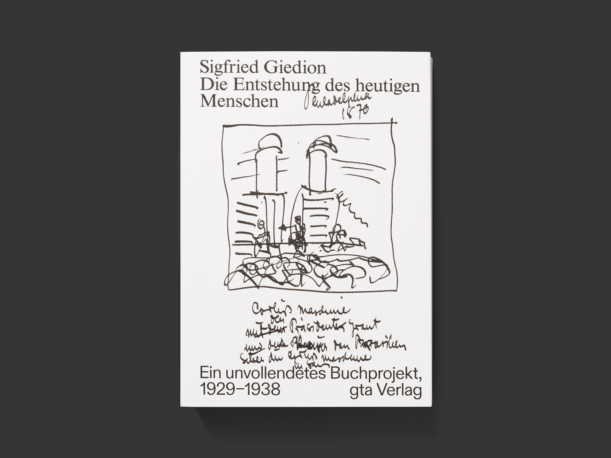 This academic treatment of an unfinished book project by Sigfried Giedion, dating back to the 1930s, captures the complex content exceptionally well thanks to the functional and clever design. The significance and structure of the work are apparent right from the broad spine, with the three sections of the book listed beneath the capitalised main title. Within the book block, the three sections are delineated from each other by individual sheets of the thick, rough cover paper, which serve as title pages explaining the different statuses of the sections. Only the first lengthy text was written by Giedion himself; the other two are described as ’summaries by the editors’ based on Giedion’s notes. The typographical design, which includes a serif and a sans-serif font, is elaborate but not overwhelming, as it is conditioned by the various paratexts such as page headings, footnotes, academic commentary and so forth. Three image sections stand out from the exterior owing to their coloured backgrounds, making them just as immediately accessible as the text sections. Despite the decidedly modern aesthetic, all the design decisions complement the archive material.