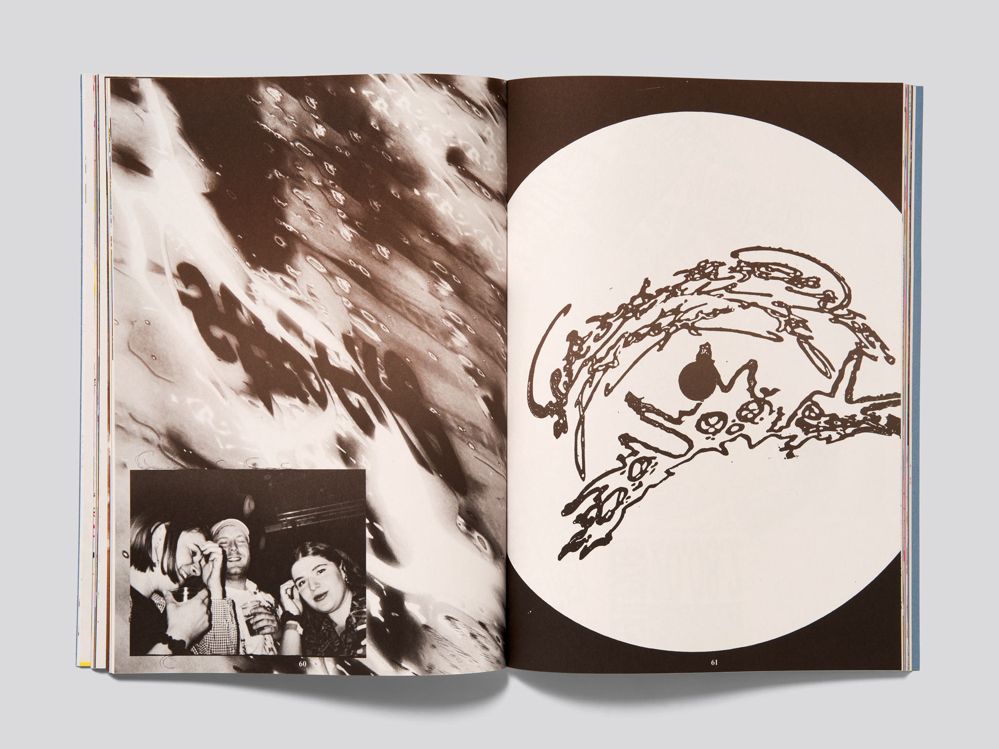 This 112-page, A4-format publication documenting the activities of the Fribourg music label and event collective strecke records (2016–22) is striking for its contemporary use of unusually strong colour tones and diverse visual elements, images, colours, text blocks and fonts. The design eschews a table of contents and an identifiable structure, instead freely playing with and combining photographs of concerts, parties and performances with record covers, flyers, playlists, and so on. Some pages have a clear layout, while others do not; the photographs are sometimes placed individually, but also alongside one another and occasionally rotated, cropped or collaged. This free layout follows a long tradition in the documentation of music scenes, compelling the reader to engage with curiosity, eager to discover the next twist in the improvisation, though occasionally contending with disorientation. The design also gives the publication a strong visual identity that ties together the disparate and, in some cases, not particularly high-quality material. One key element is the party playlists which reappear in different arrangements, set in a uniform size in strecke’s company typeface. A few pages at the beginning contain various short texts in a different font, placing the collective’s activities in a cultural-political context. The pronounced DIY ethos and the strong local ties also come across in the successful collaboration with a Fribourg-based printer.