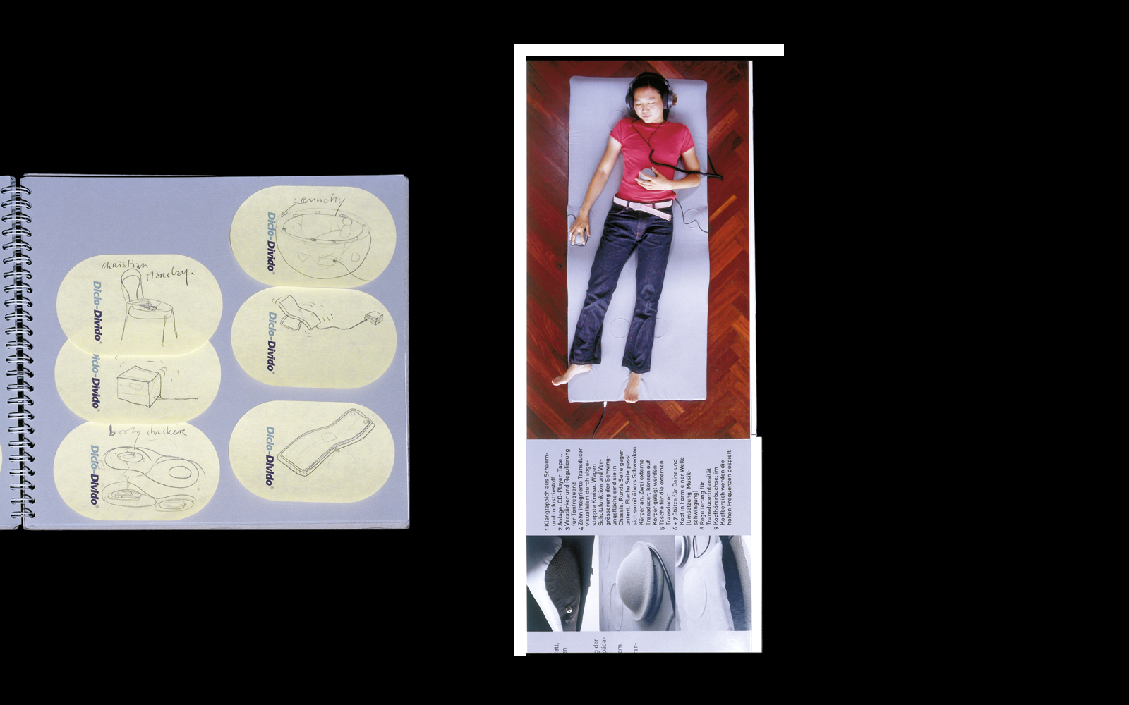 Sous l'inspiration de diverses méthodes de thérapie où la transmission de sons sur le corps est centrale, la signification originale de 'personare' (sonner à travers, faire résonner) trouve une nouvelle expression chez 'Sonic-Futon', et sur divers niveaux. Les 'transducers' (transformateurs des sons corporels) intégrés dans le matelas renforcent les sons musicaux. Ceux-ci, en tant que massage sonore, peuvent avoir des effets thérapeutiques, ou permettent simplement aux usagers un rituel de détente tout personnel.