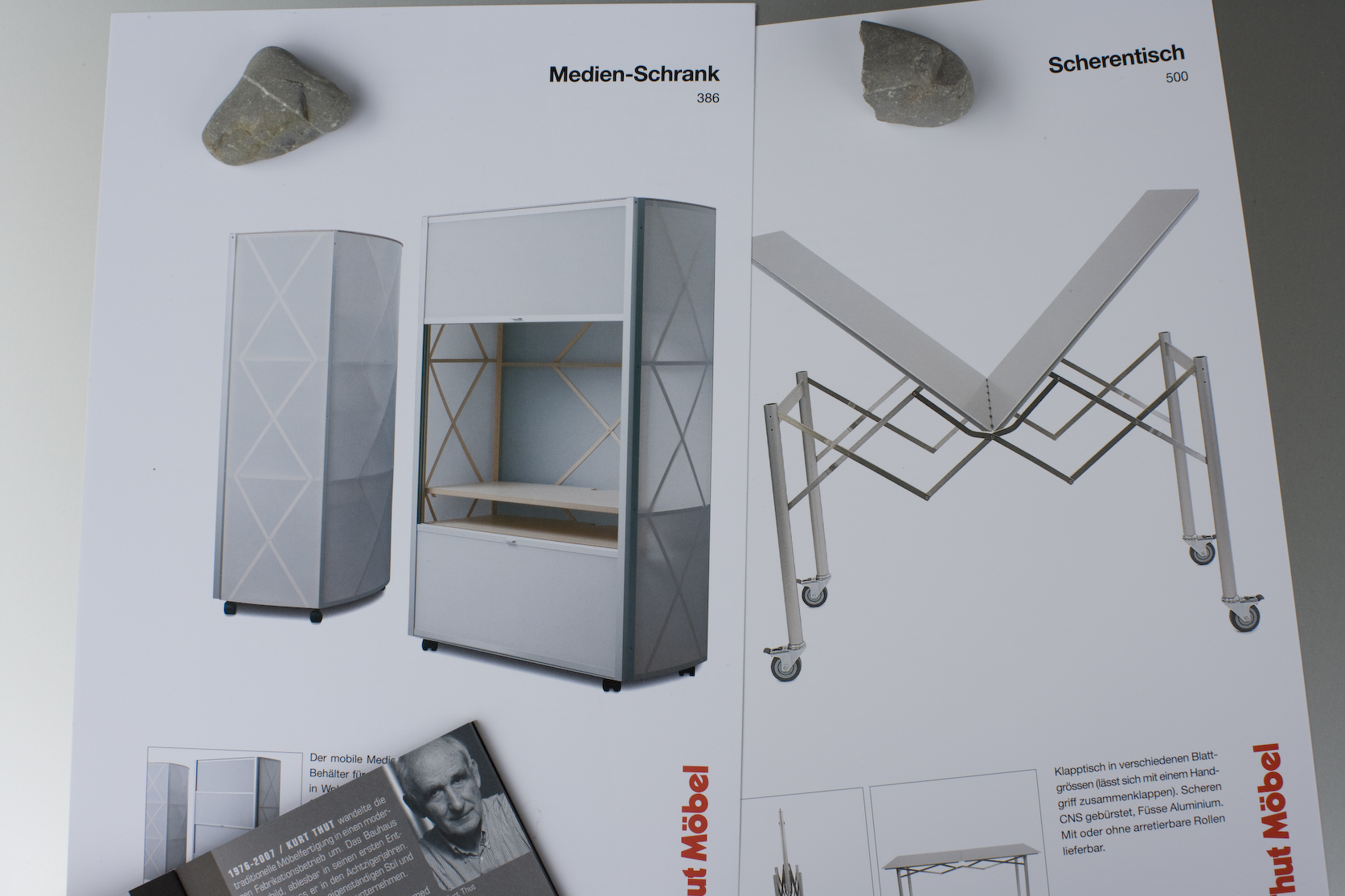 Kurt Thut a fait de la menuiserie fondée par son père une entreprise au rayonnement international en utilisant de manière créative les nouveaux matériaux et les nouvelles technologies. C'est peut-être le motif des ciseaux, thème récurrent, qui traduit le mieux sa volonté de minimalisme. Par exemple le lit-ciseaux, une simple grille mobile qui s'adapte aux besoins des clients et est facile à déplacer grâce à ses 28 kg seulement. Cette solution séduisante et en apparence simplissime est en fait le résultat d'un processus de création long de plusieurs années, qu'ont accompagné de nombreuses idées et prototypes.