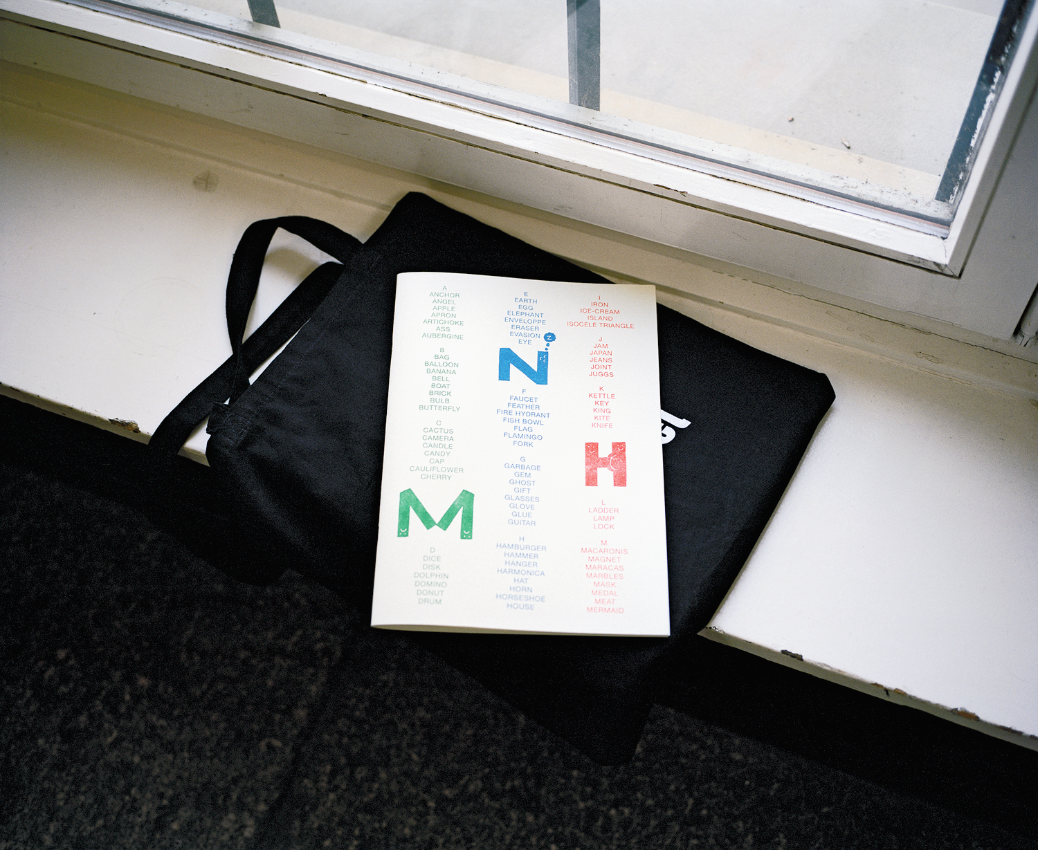 Le cahier 'Alphabet' a été réalisé en collaboration avec le groupe d'artistes lausannois 'Körner Union' (dont l'un des membres, Sami Benhadj, a également été récompensé cette année) et édité par Rollo Press. Divers objets qui commencent tous par la même lettre et qui sont dessinés sur un mode ludique, cru et tout simplement amusant, forment finalement la lettre elle-même. Au fil des pages, on rencontre ainsi une foule d'ustensiles quotidiens et de babioles insolites, qui permettent simultanément de réactiver ses connaissances d'anglais. Le cahier donne également la solution. La liste des objets dessinés est imprimée en-dessous ou à côté de chaque lettre traitée grossièrement. Tatiana Rihs parvient avec brio à instaurer un équilibre entre un aspect brut des illustrations et un dessin extrêmement soigné des détails ainsi qu'une rigueur dans la mise en page.