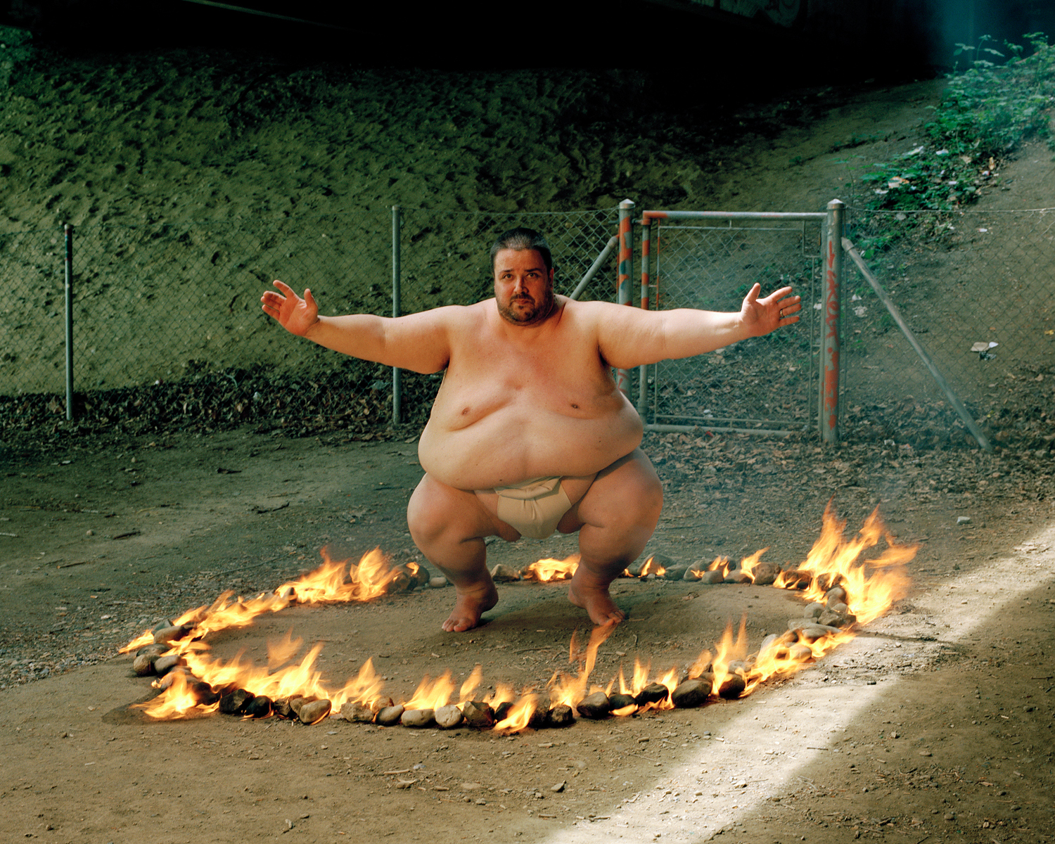 Dans ses travaux et dans le monde visuel qu'il y crée, Favrod mène une réflexion puissante et approfondie sur l'identité japonaise et sur ses propres liens avec le Japon. Toutes les photos de la série, qui en comprend 22, ont été réalisées en Suisse, ce qui signifie que, pour les mises en scène de 'Gaijin', le photographe a dû se procurer des masques et des costumes. Concrètement: le guerrier samouraï (lui-même) doit ici se contenter d'une armure en carton. Pour certaines photos, Favrod s'en sort sans 'expédients'. En particulier, dans les photos de paysages pittoresques, le caractère prétendument japonais se manifeste par des atmosphères et des motifs choisis avec habileté.