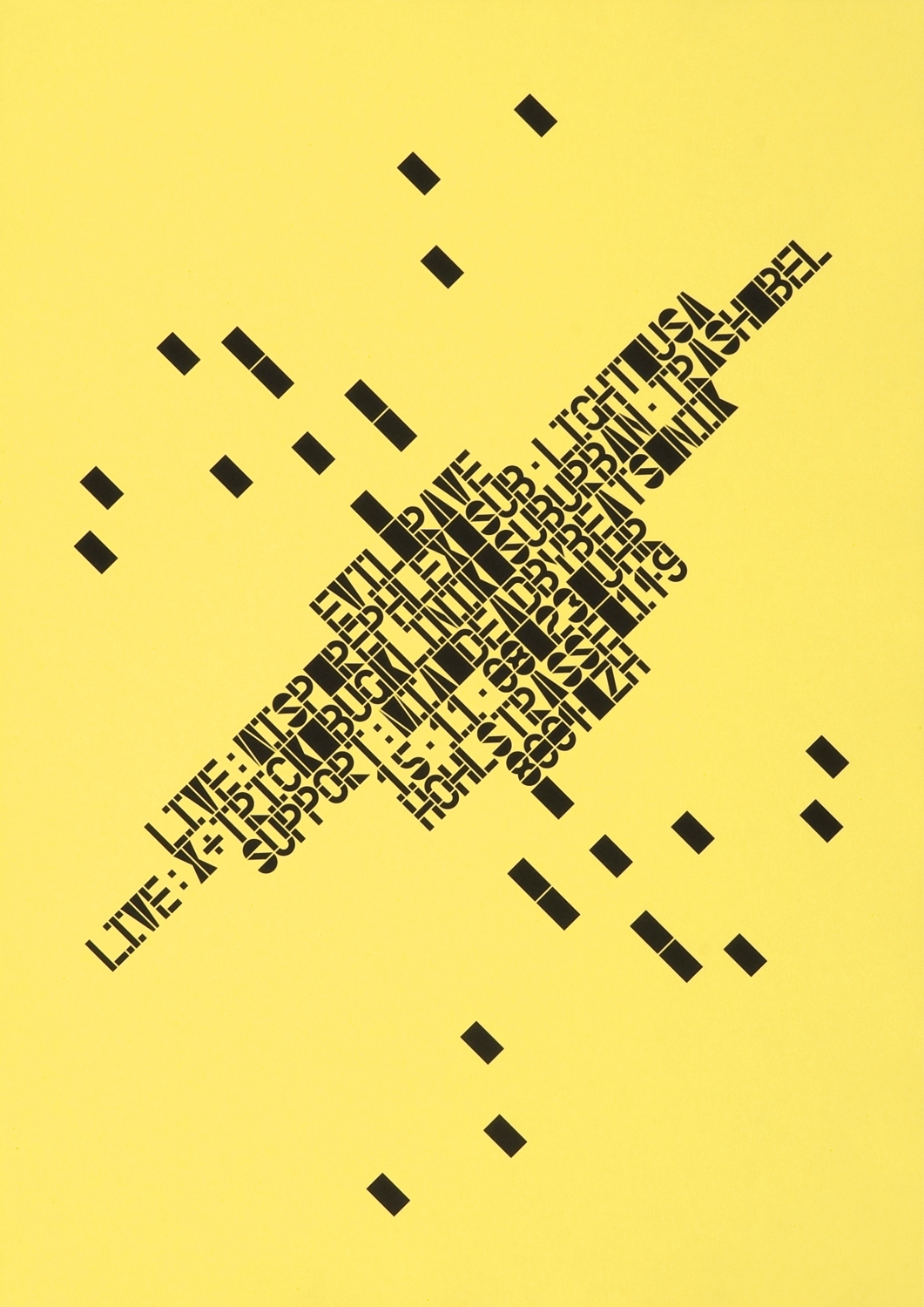 Pourquoi ne choisir qu'une seule encre d'imprimerie? Le graphiste zurichois Lukas Zimmermann, qui a obtenu un diplôme en communication visuelle à la Zürcher Hochschule der Künste (ZHdK), explique comment il procède: il commence par chercher un point de départ et à partir de là, il développe la typographie, l'image et le dessin. Depuis 2003, il n'emploie pour ses affiches qu'une seule encre d'imprimerie. Avec beaucoup d'habileté, il mise tout sur le travail artisanal, souligné avec persistance dans la typographie, dans l'application de la couleur et dans les dessins au trait. Ses affiches, souvent liées à des événements musicaux ou des manifestations culturelles, il les imprime lui-même et il en tire entre 30 et 300 exemplaires. Il est rare de rencontrer une œuvre graphique aussi conséquente, qui se décline dans les techniques d'impression les plus diverses, entre autres, impression numérique, sérigraphie ou flexographie. Zimmermann n'est pas seulement virtuose dans sa manière de traiter la typographie, il 'trouve' également les illustrations qui conviennent et fait preuve d'une extrême cohérence dans la mise en œuvre d'une seule idée d'illustration par affiche. Pour annoncer une soirée DJ dans un club underground branché de Zurich, il insère un lion rugissant dans l'affiche, une accroche efficace qui la distingue de toutes les autres sur le marché tapageur de la musique. Pour annoncer une 'evil rave', il utilise un dessin au trait provocateur représentant une garniture de couteaux, du petit couteau d'office au gros couteau à trancher. Les lettres donnent souvent l'impression d'avoir été découpées à la main, ce qui leur confère un charme rustique. Une sensation underground émane des imprimés de Zimmermann, ils forment un contraste bienfaisant avec le graphisme style papier glacé qu'on rencontre partout. Rien d'étonnant donc à ce qu'il réalise les prospectus de la Rote Fabrik, le centre culturel alternatif de Zurich. Zimmermann fait preuve d'une créativité particulièrement débordante dans sa façon de traiter les lettres: il les dénature, les boursoufle et les agence sur le papier comme si elles avaient été appliquées au tampon. C'est un graphiste qui a le courage d'imposer sa spécificité et de revendiquer une certaine maîtrise 'artisanale' dont notre monde aseptisé et formaté a un urgent besoin.