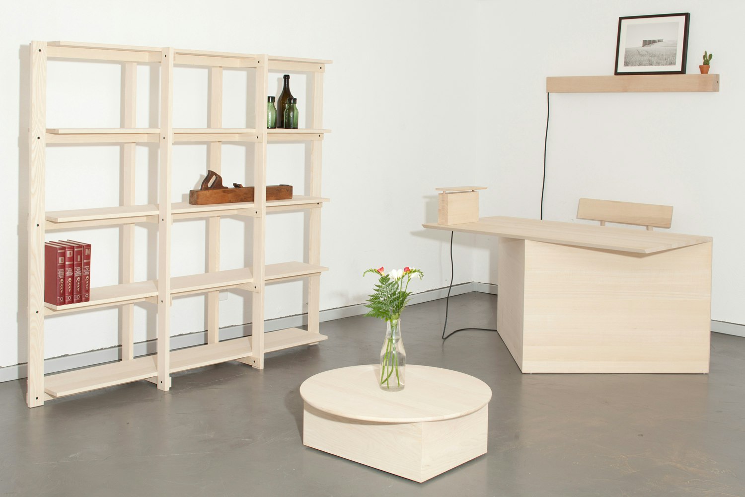 Das Studio A C E hat mit einer 6-teiligen Möbel-Kollektion den Eidgenössischen Preis für Design gewonnen. A C E sind die Industriedesigner Arnault Weber, Camille Blin und Emmanuel Mbessé, die 2009 gemeinsam an der ECAL ihren Abschluss gemacht haben. Die intelligent zusammengestellte 'Collection 1' besteht aus einem Stuhl, einem selbsttragenden Gestell, einem Tisch, einem Couchtisch und zwei Lampen. Das auffallendste Produkt ist der Stuhl, dessen Rückenlehne die einer Bank ist. Sie erlaubt dem Sitzenden im Aufstützen der Arme eine Bewegungsfreiheit auf beide Seiten und so auch bei längerem Sitzen eine zuträgliche Dynamik.Es ist der erste Wurf der von A C E gegründeten Firma, in dem es um Nachhaltigkeit und weniger um den schnellen Gewinn geht. Für die Möbel wurde einheimische Esche (massiv oder in lamelliert-geklebten, nicht verfugten Platten) verwendet, eine Holzart, die im Gegensatz zu anderen Nadelhölzern nicht oft eingesetzt wird.Die Designer haben es sich zudem zum Ziel gemacht, nur mit lokalen Handwerkern zu arbeiten. Für die Co-Produktion mit ihnen benutzen sie nur bereits vorhandene Produktionsapparate mittlerer Grösse. So ist die Ästhetik von A C E von den Geräten beeinflusst und es überwiegen klare geometrische Formen, deren Schlichtheit sich auch in der Verarbeitung zeigt. Die Möbel werden auf eine möglichst einfache Weise zusammengefügt und zeugen auch an diesen Verbindungsstellen von der hohen Qualität der Arbeit von A C E.Das ambitionierte Vorhaben der drei ist es, mit DesignerInnen ihrer Generation zusammenzuarbeiten und ihnen so die Möglichkeit zu geben, vom Know-How Schweizer Handwerker zu profitieren. Die 'Collection 2' wird schrittweise präsentiert werden.