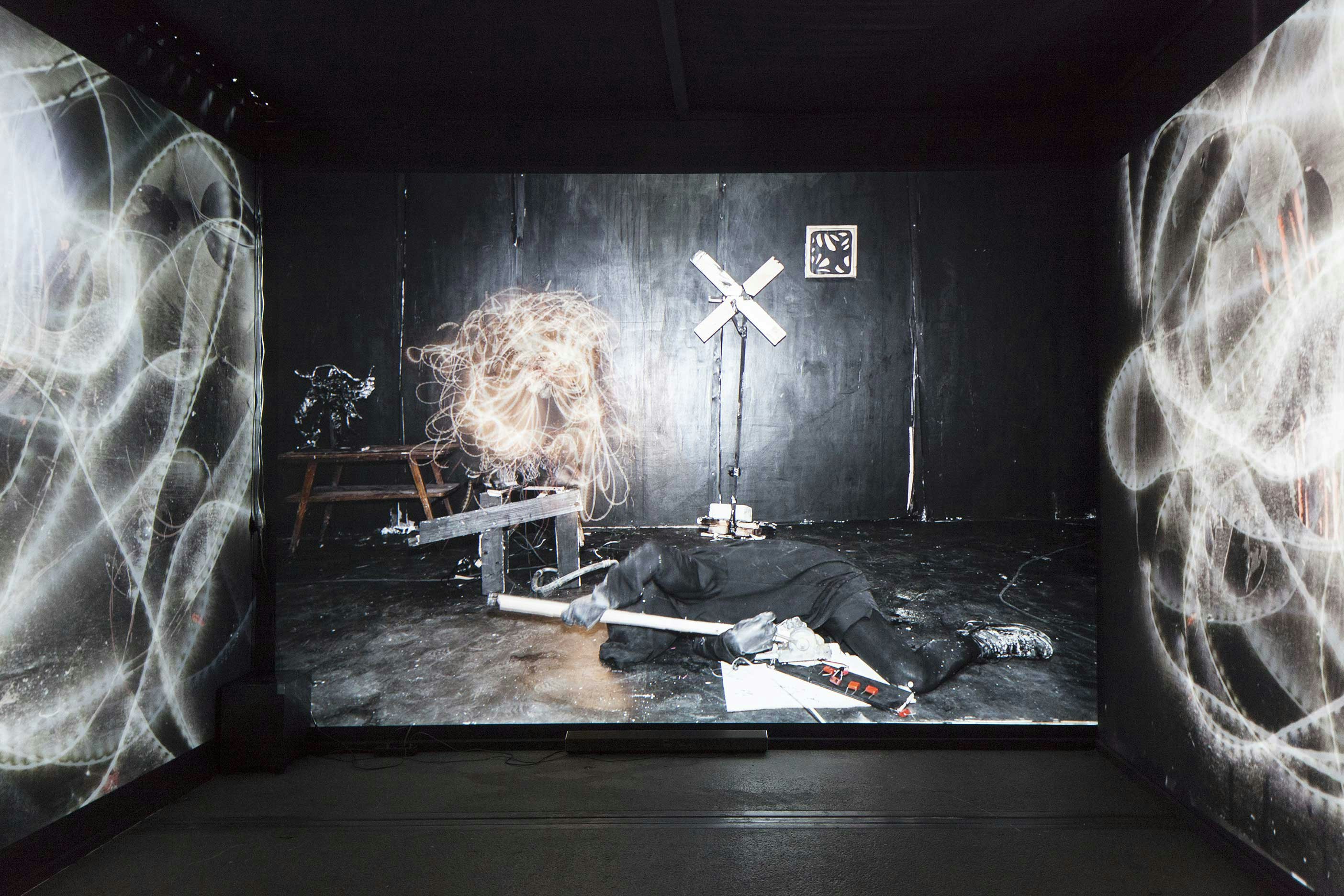 «Throw Your Shadows» ist ein immersives Experiment, das eine seltsame und faszinierende nächtliche Welt entstehen lässt. Rebetez schöpft für dieses Universum aus Traumbildern, Urreligionen und einer Esoterik, die sowohl aus dem Jura als auch aus Afrika oder Ozeanien stammen könnte. Die durch Stop-Motion-Technik hergestellten bewegten Bilder vereinen Malerei, Plastik, Beleuchtung und Fotografie. Der Bildrhythmus und die Tonspur aus bruitistischer Musik und konkreten Klängen ziehen uns nach und nach inihren Bann. Der Künstler und Regisseur Rebetez ist mit überbordenden Umgebungen und Multimedia vertraut und überrascht uns hier mit der Sparsamkeitseiner Mittel. Die prägnante, zauberhafte Installation lässt Kulturen und Epochen in einen Dialog treten, die zuvor fälschlicherweise weit voneinander entfernt schienen.