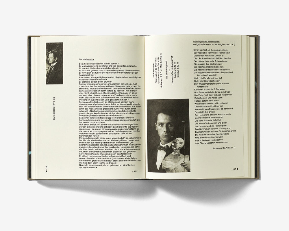 1921 trug Tristan Tzara zahlreiche Text- und Bildbeiträge von über 30 Dadaistinnen und Dadaisten für eine «Dadaglobe» genannte Anthologie zusammen. Die Realisierung scheiterte, doch eine Ausstellung am Kunsthaus Zürich und am MoMA rief das Projekt in Erinnerung. Der mittelgrosse Katalog mit Hardcover macht das kleinteilige Material dank hervorragender, beinahe selbsterklärender Organisation neu zugänglich. Ein erster Teil auf einem schmaleren Papierformat enthält illustrierte kunsthistorische Essays und verzeichnet alle bei Tzara eingegangenen Beiträge einzeln mit ausführlichem wissenschaftlichem Kommentar. Im zweiten, breiteren Teil die Beiträge in doppelseitigen Layouts reproduziert, sodass der Dadaglobe in neuer Form doch noch zustande kommt. Die sehr systematische Gestaltung verwendet ein Raster und eine einheitliche Schriftgrösse, setzt aber neben wechselnden Bildgrössen auch varierende Laufweiten und Zeilendurchschüsse sowie Versalien und Unterstreichungen ein. Die Eigenheiten der einzelnen Beiträge kommen gut zur Geltung, und die Layouts wirken zugleich informativ und spielerisch, ohne dass es nach einem Dada-Pastiche aussieht.