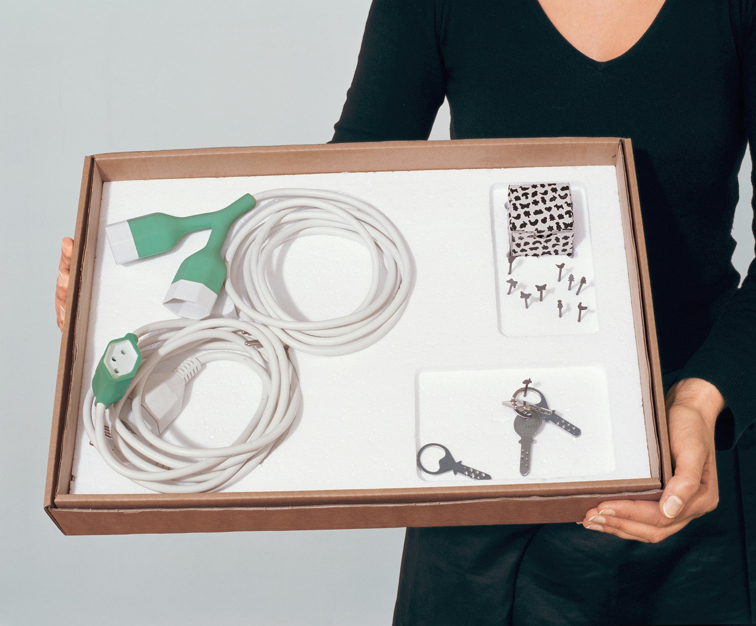 Die Diplomarbeit ‘Self-Workshopping' des Industriedesigners Damien Regamey umfasst unterschiedlichste Alltagsobjekte. Im sich selber gesteckten Zeitrahmen von je zwei Wochen (Idee bis und mit Realisierung der Prototypen) ging es dem Designer jedoch nicht um Neuerfindungen, sondern darum, diesen Gegenständen - oft durch die Verschmelzung zweier Objekte - eine zusätzliche, nützlichere Dimension zu verleihen: So werden zum Beispiel Fussmatte und Korridorteppich, Kabel und Doppelstecker, Kleiderhaken und die zu ihrer Befestigung benötigten Schrauben eins und gehen, oft von einem Augenzwinkern begleitet, logische Verbindungen ein. Anderes, wie die Nagelköpfchen in Form von Umrissen von Tieren, oder das Reliefmuster des Untersetzers, das sich durch den Kontakt mit den heissen Pfannenboden verdunkelt, regt schlicht und einfach zu häufigem Gebrauch im Alltag an. Diese Arbeit zeichnet sich aus durch den unbeschwerten und ausgeprägt konzeptuellen Ansatz des Gestalters. Die Entwicklung und Realisierung der Prototypen in dieser kurzen Zeit verhinderte zwar teilweise ausgereifte Lösungen, zeugt aber von grosser handwerklicher und gestalterischer Fertigkeit.
