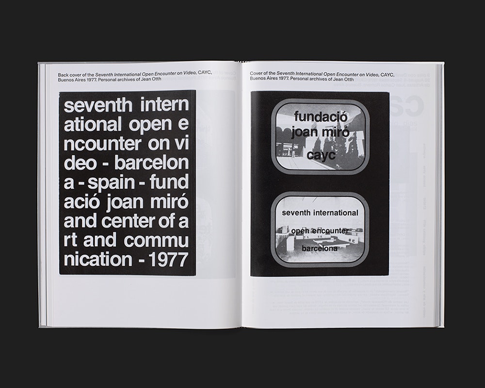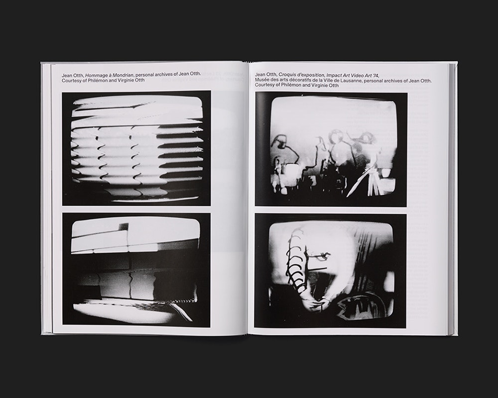 Ein grossformatiger schwarz-weiss-silberner Band mit Flexcover, der die Westschweizer Videokunstszene im Jahr 1974 bespricht, findet einen guten Umgang mit dem für Bücher schwierigen Videomaterial. Die Gestaltung fokussiert weder die technischen Eigenheiten noch inhaltliche Details, sondern lässt die Betrachtenden in spielerischer Weise in die Ästhetik der Bilder eintauchen. Durch variable Einfärbung der meist relativ grossen Stills – schwarz-weiss, silber-weiss, schwarz-silber, oder schwarz-silber-weiss – können unterschiedliche Bildkompositionen akzentuiert werden. In einem einleitenden Teil sind 2 bis 10 Stills pro Doppelseite ohne Text in einem Rasterlayout zu grafischen Kompositionen arrangiert. Die anschliessenden wissenschaftlichen Artikel sind auf der Doppelseite in vier Spalten gesetzt, wobei die erste für die zahlreichen Fussnoten genutzt wird. Nach jedem Artikel folgt eine Reihe von Referenzbildern und Textdokumenten, die meist alleine oder zu zweit auf einer Seite abgebildet und erläutert sind. Starke Kontraste vereinheitlichen die Erscheinung von Bild und Text, so dass die Videoästhetik die gesamte Erscheinung des Buchs affiziert. Trotzdem ist es nicht übergestaltet.