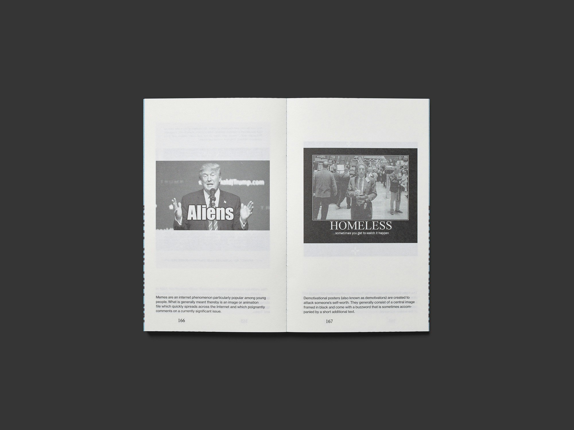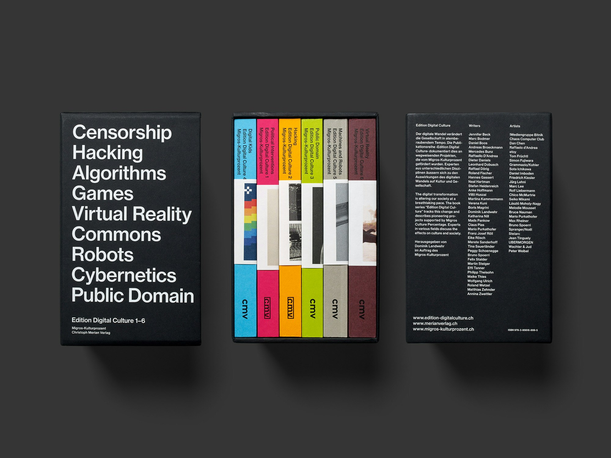 Die sechs Taschenbücher zum Themenbereich «digitale Medien» überzeugen als kohärent gestaltete Serie, die den Status des Buchobjekts im Zeitalter der Digitalisierung thematisiert. Durch das kleine Format passen die Bände tatsächlich in eine Kleidertasche, und durch den jeweils einfarbig bedruckten Schnitt, der zudem schwarze Schlagworte zeigt, erscheinen sie sehr objekthaft. Sie wirken fast wie ein Bild oder das Modell eines «Buches», wozu auch die Umschlaggestaltung beiträgt, die eine vergangene visuelle Sprache zitiert. Wer ein solches Objekt mit sich führt, macht deutlich, dass er oder sie auch im digitalen Zeitalter nach wie vor «Bücher liest». Dies dürfte zum grossen Erfolg beitragen, den die Reihe nach Aussagen mehrerer Jury-Mitglieder bei Design-Studierenden erzielt. Ein weiterer Erfolgsfaktor ist der niederschwellige Zugang, der durch die kurzen Aufsätze, die gross und unregelmässig gesetzten Titel sowie durch die attraktiven Teile mit «Visual Context» – meist ein Bild pro Seite – erzeugt wird. Die in den Texten aufgeworfenen Fragen zur Funktion und Kritik digitaler Medien sind offenkundig drängend.