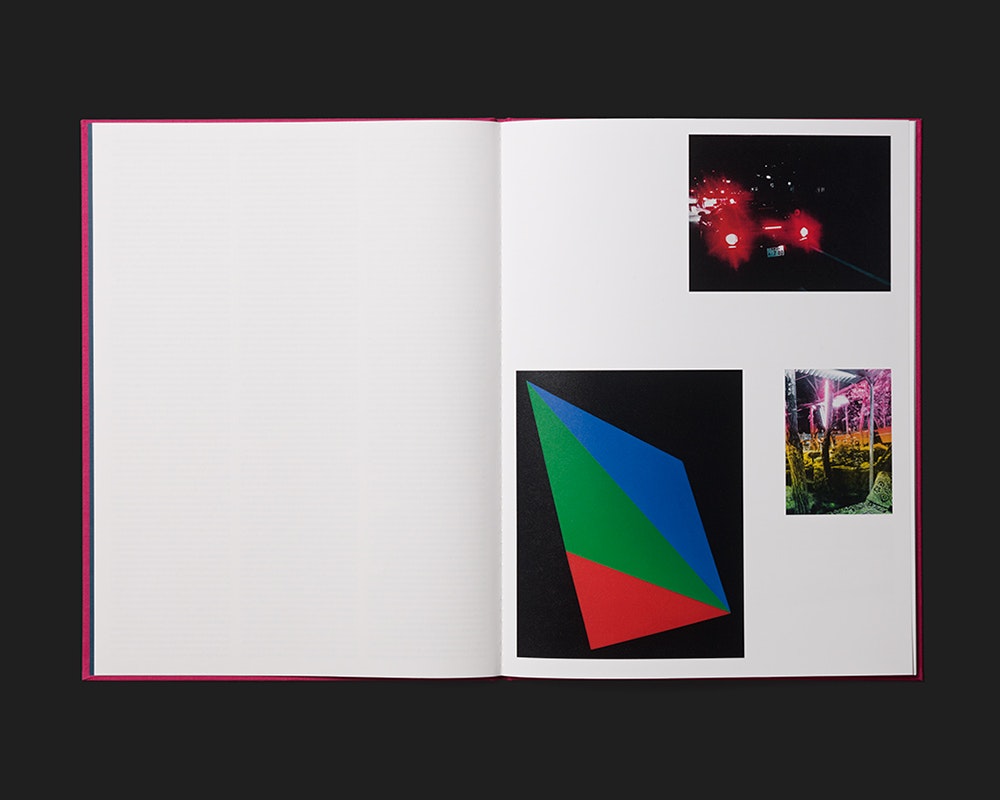 Der grosse, sehr dünne Katalog zu einer Ausstellung der iranisch-schweizerischen Fotografin Shriana Shahbazi im KINDL Berlin adaptiert die museale Präsentationsweise für das Buchformat. Shahbazi fügt oftmals in Form, Inhalt und Grösse variierende Bilder zu Wandinstallationen zusammen, und vergleichbar verfährt die Gestaltung auf 16 Bildseiten. Jeweils 1–4 Fotografien pro Seite sind in unterschiedlichen Grössen und Formaten mit viel Weissraum zu wechselnden, doch stets harmonischen Tableaus angeordnet. Der identische weisse Seitenrand fungiert als Rahmen, und jede Seite oder Doppelseite scheint für sich allein zu stehen, ohne formale oder narrative Verbindung zur nächsten. Die je 4 Textseiten am Anfang (Essay des Kurators) und Ende (Bildlegenden, Impressum) sind dreispaltig gesetzt. Alles ist zwar schlicht, aber äusserst präzise, und die Qualität der Fotoreproduktionen ist sehr hoch. Der vergleichsweise dicke, rosafarbene Hardcover-Umschlag betont die Funktion einer schützenden Hülle für den Inhalt, und er verleiht dem Band einen besonderen Objektcharakter, der durch das rote Titelschild aus Lederimitat und die fadengeknotete Bindung verstärkt wird.