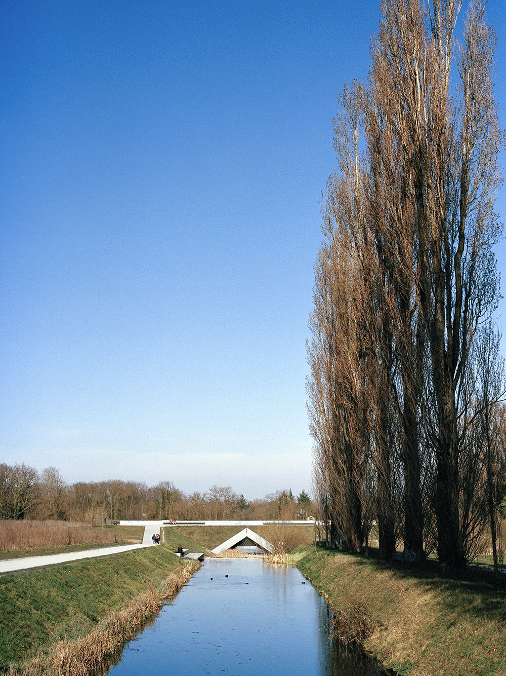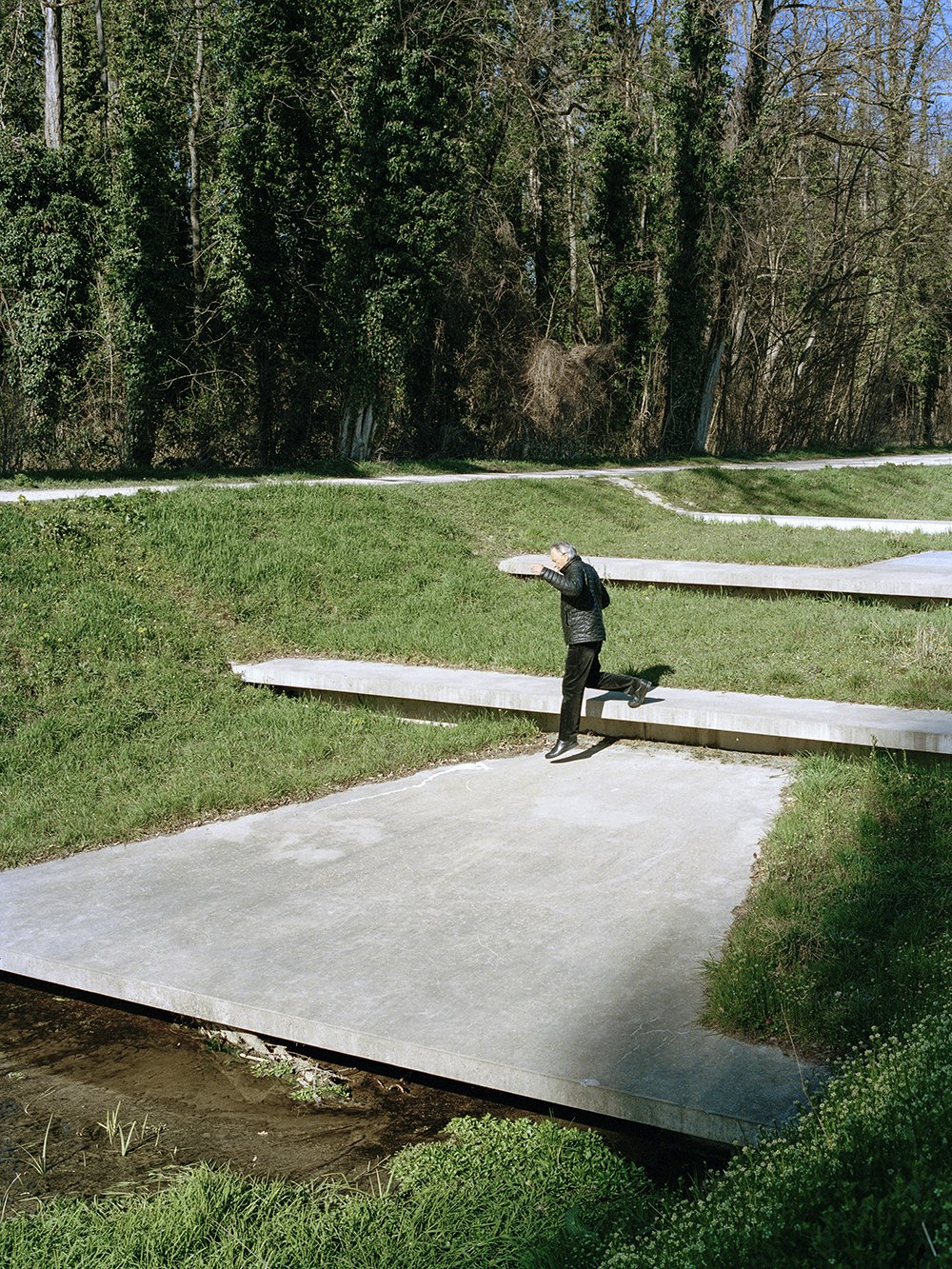 Stattdessen sollten sie immer etwas über die entsprechende Gegenwart, vor allem aber über die mögliche Zukunft erfahrbar machen. In seinen ersten Projekten wie dem Parc de Lancy in den 1980er Jahren, dem Genfer Abschnitt des Weges der Schweiz rund um den See der vier Kantone zu Beginn der 1990er oder dem Bijlmer Monument in Amsterdam Ende der 1990er Jahre ging er mit dem jeweiligen Territorium wie mit einem Palimpsest um – immer auf der Suche nach den sichtbaren wie unsichtbaren Spuren. Denn für ihn war es entscheidend, «nicht in der Vergangenheit [zu] leben, sondern mit der Vergangenheit.»
