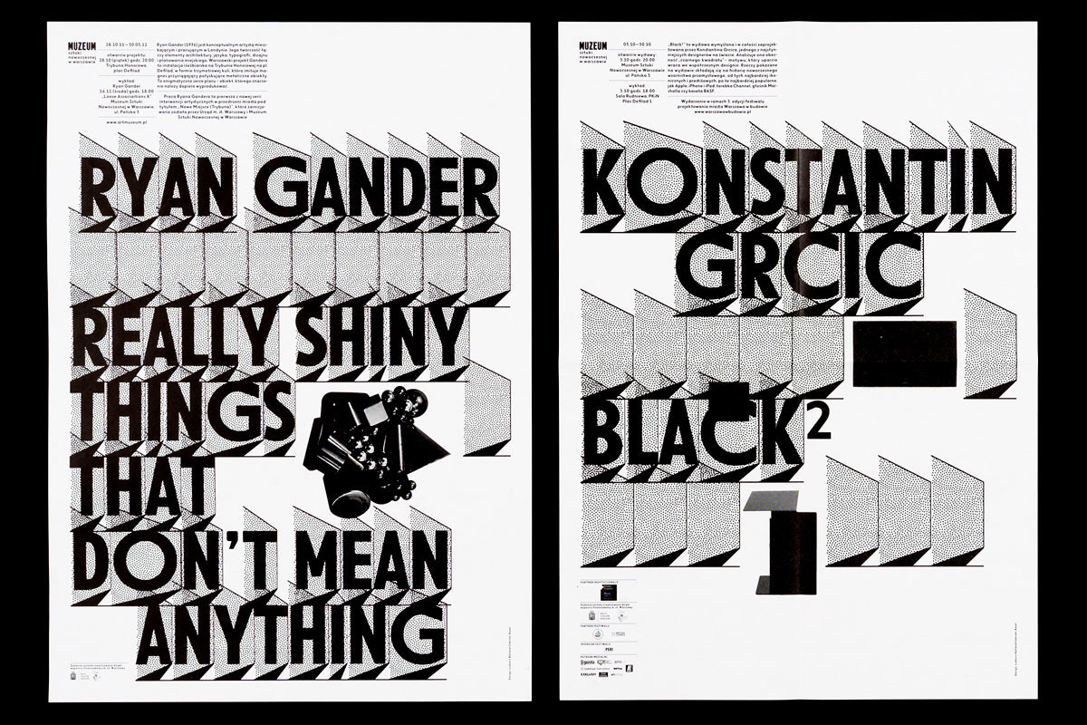 Für die erste Umsetzung hat Balland den geplanten Neubau des Museum of Modern Art vom Architekten Christian Kerez in seine grafische Gestaltung miteinbezogen. Wie Zeitzeugen dienen die Buchstaben als Projektionsflächen für die Ansichten von Innenräumen (Kleinbuchstaben) und Fassaden (Grossbuchstaben). Gleichzeitig werden sich in einer dynamischen Umsetzung die polnische und englische Sprache gestalterisch und inhaltlich gegenübergestellt.