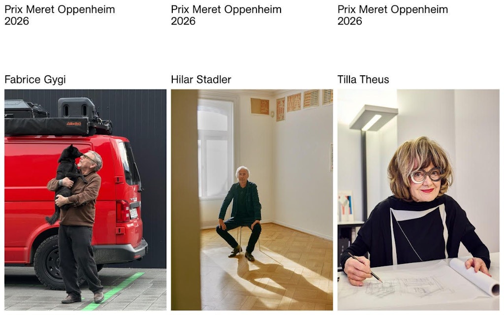 Auf Empfehlung der Eidgenössischen Kunstkommission zeichnet das Bundesamt für Kultur in diesem Jahr Fabrice Gygi, Hilar Stadler und Tilla Theus mit dem Schweizer Grand Prix Kunst / Prix Meret Oppenheim aus. Die Preisverleihung findet am 15. Juni 2026 in Basel in Anwesenheit von Bundesrätin Elisabeth Baume-Schneider statt. Im Anschluss wird die Ausstellung Swiss Art Awards eröffnet.