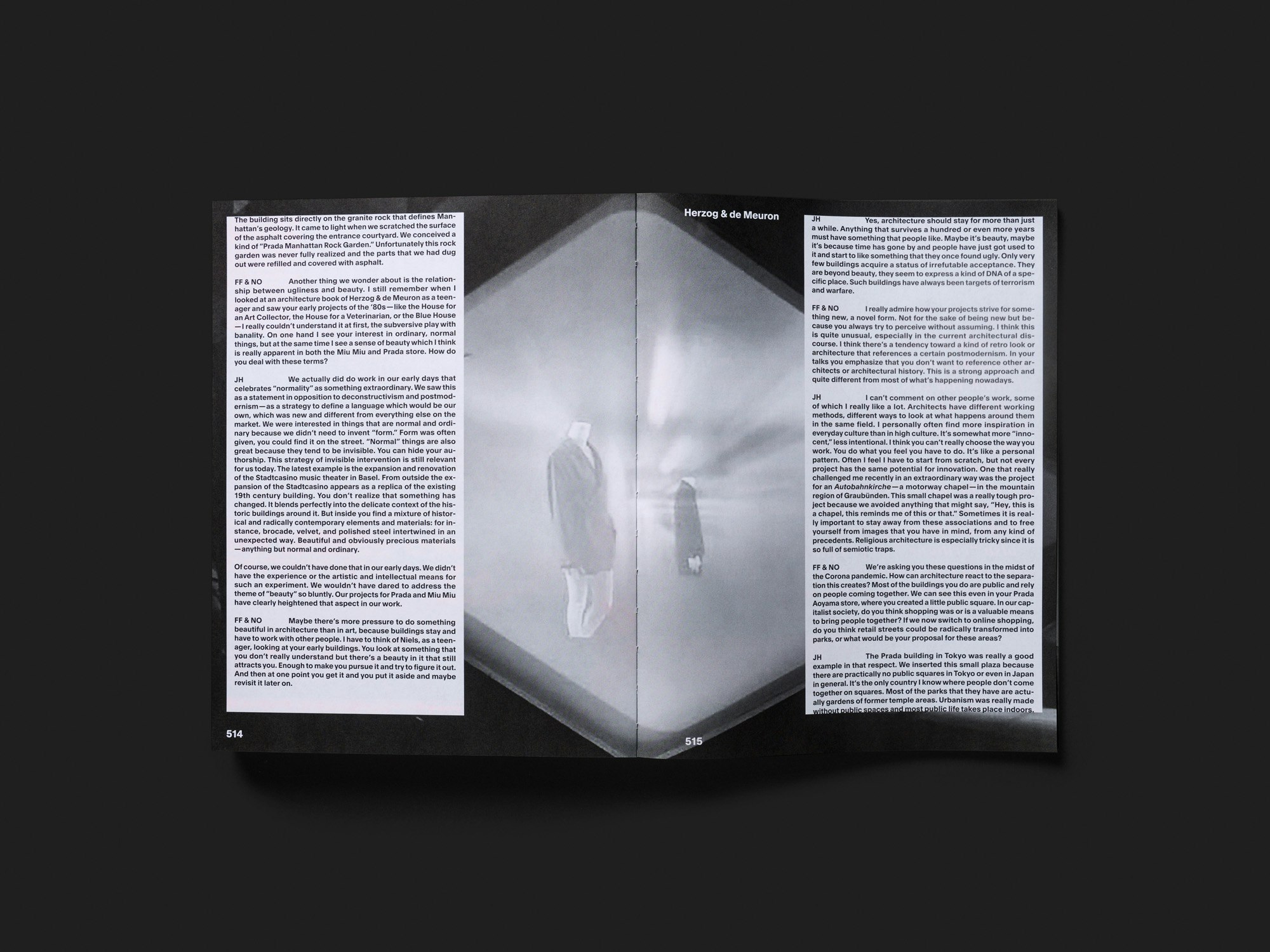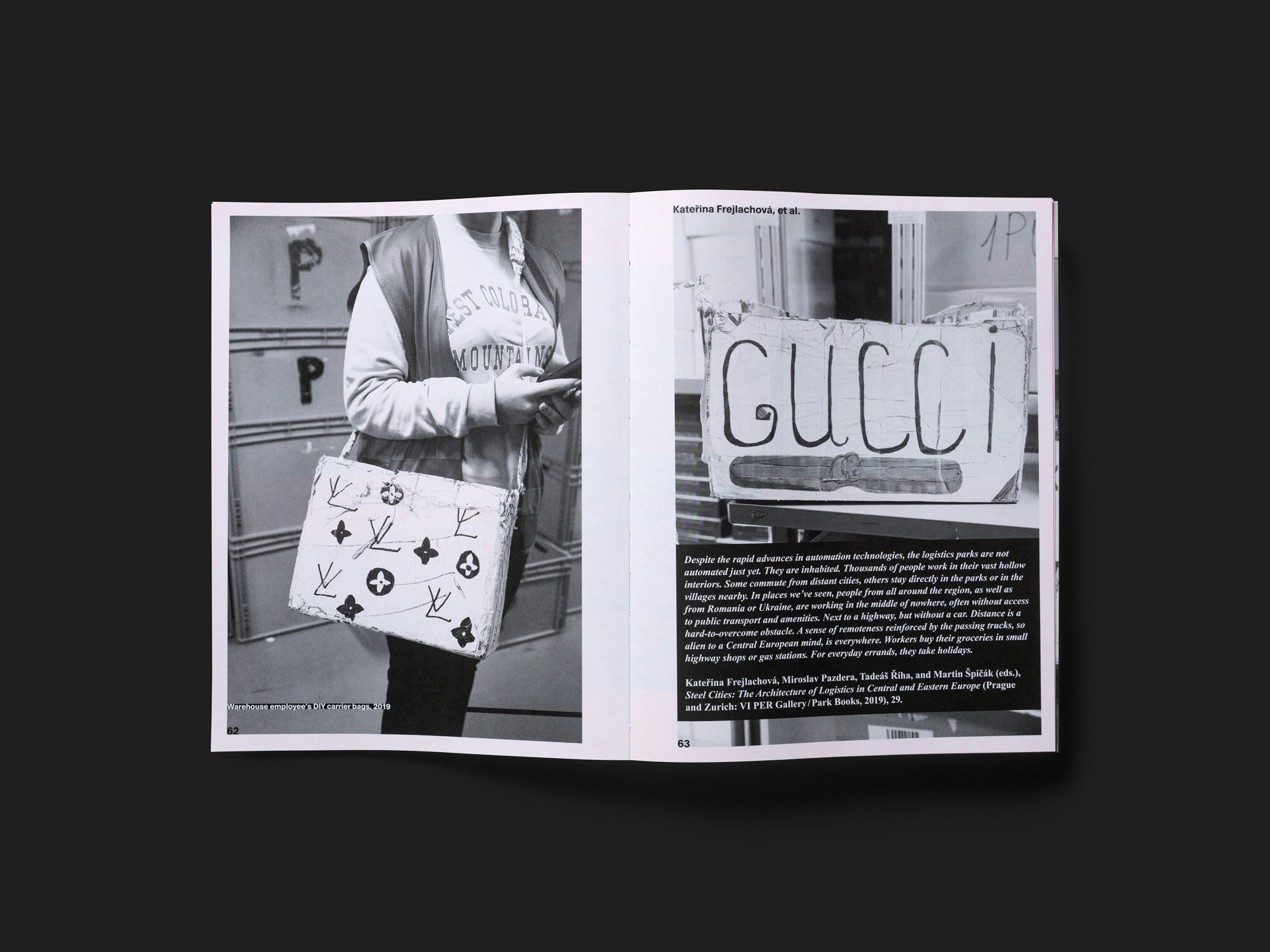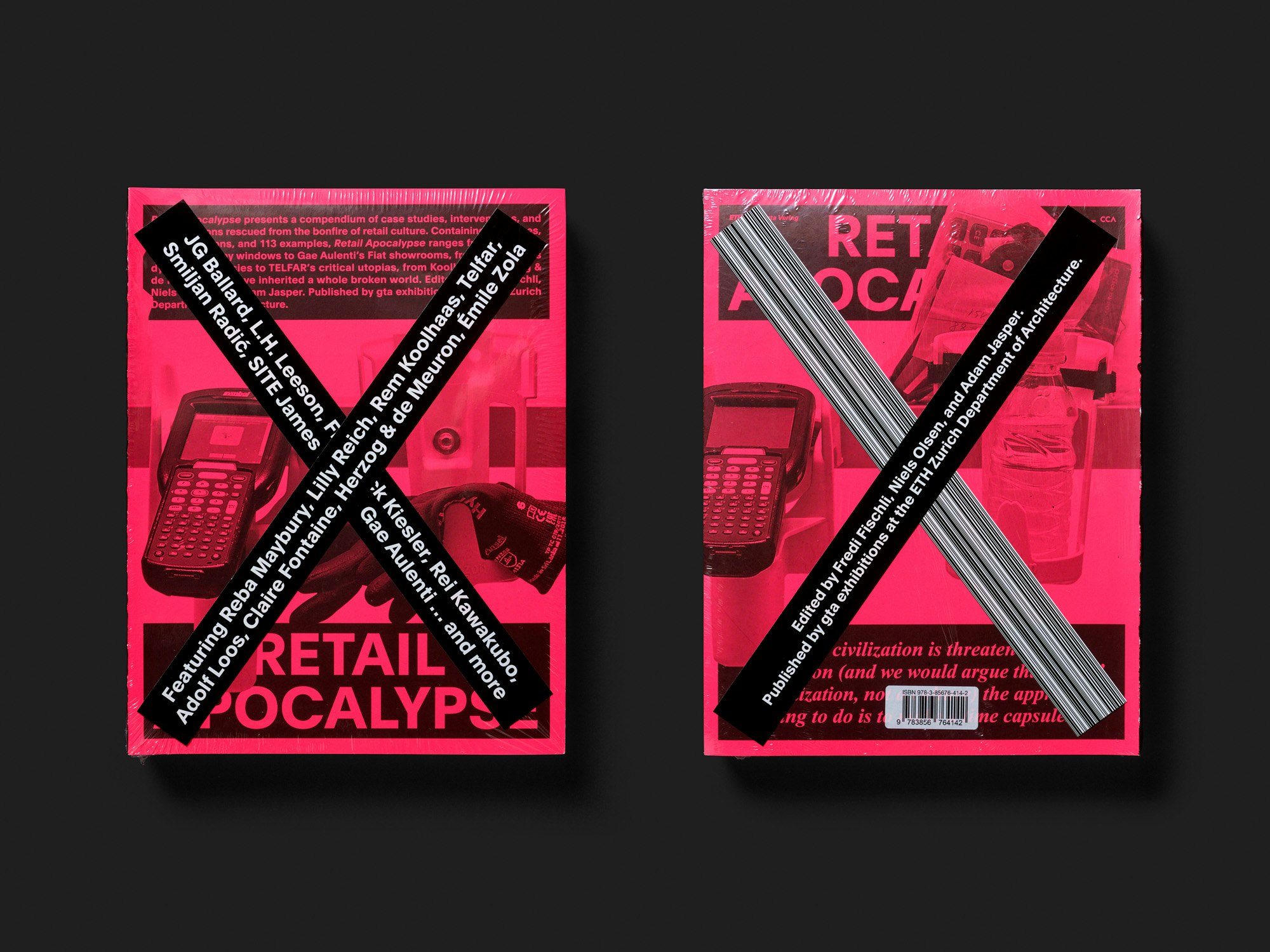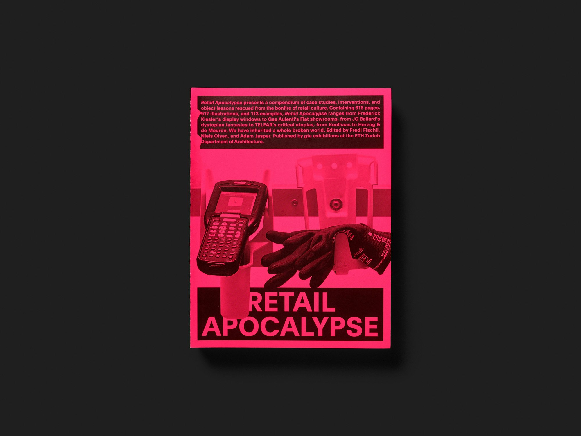 Ein schwerer 600-seitiger Band, der den Niedergang des Einzelhandels aus architekturtheoretischer Perspektive beleuchtet, besticht durch eine simple, doch effiziente Gestaltungsidee: Das Papier ist auf jeder zweiten Doppelseite fluoreszierend-rosa. Der konstante Wechsel von weiss zu rosa – mit einfarbig schwarz gedrucktem Text und Bildern – erzeugt beim Lesen eine Atmosphäre konstanter Affizierung und kann zu einem Flimmern vor den Augen führen. Gemeinsam mit den fett gedruckten Titeln auf vielen Doppelseiten wirkt es beinahe vulgär, aber dies passt sowohl zum Einkaufs-Thema als auch zum im Titel suggerierten System-Kollaps. Dennoch ist die Gestaltung insgesamt nicht chaotisch. Die vielfältigen, reich illustrierten Beiträge, die sowohl aktuelle als auch historische Positionen aus Architektur, Kunst, Design, Mode u.a. umfassen, sind in einigen wiederkehrenden Layouts organisiert. Einheitlich gesetzte Einleitungen und Seitentitel erleichtern die Orientierung. Fast wie beim Scrollen durch verlinkte Online-Texte können die Betrachtenden nach Belieben diversen Verweisen und Bezügen folgen. Eine der wenigen Publikationen in der engeren Auswahl des Jahres, die sich eines aktuellen gesellschaftspolitischen Themas annimmt.