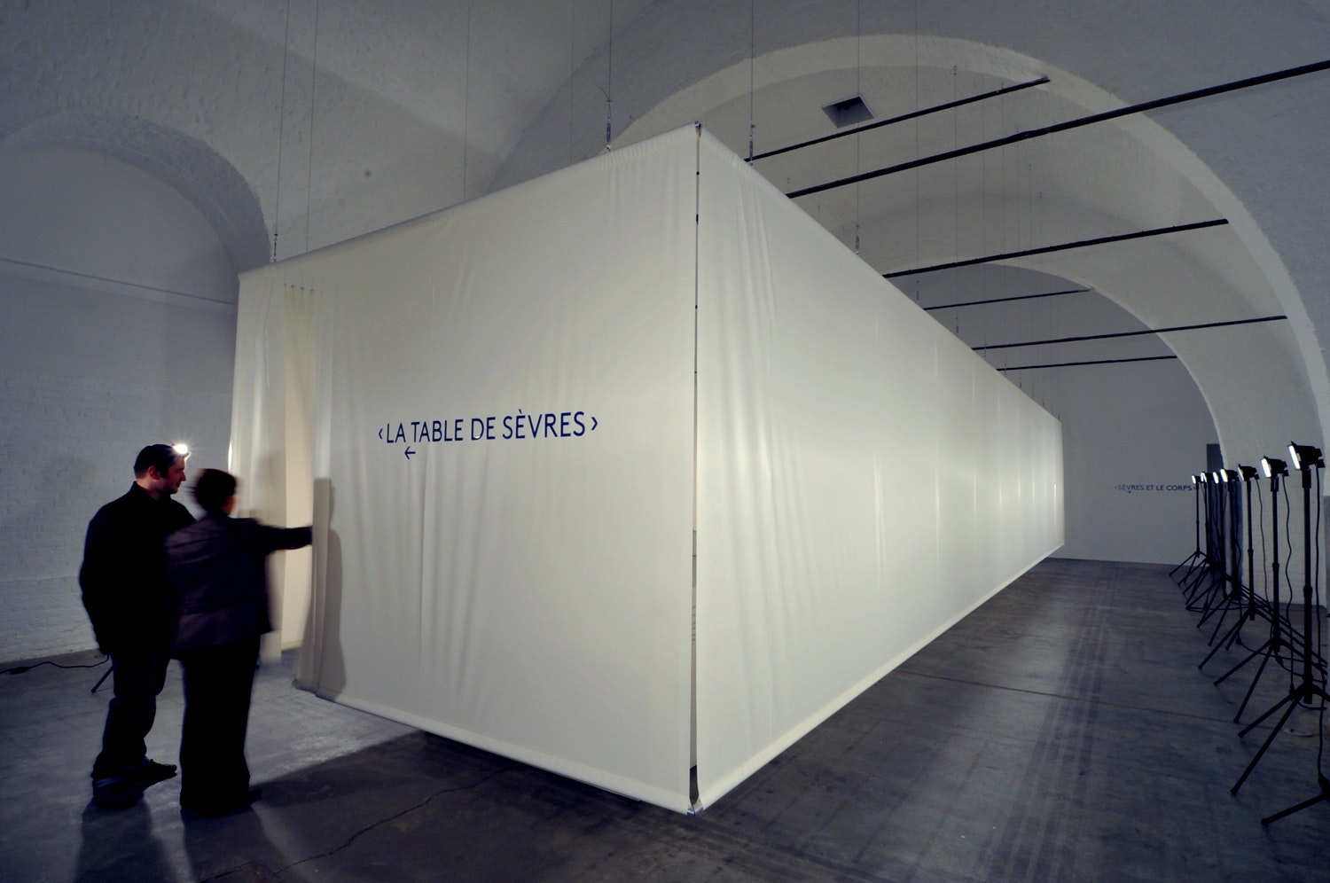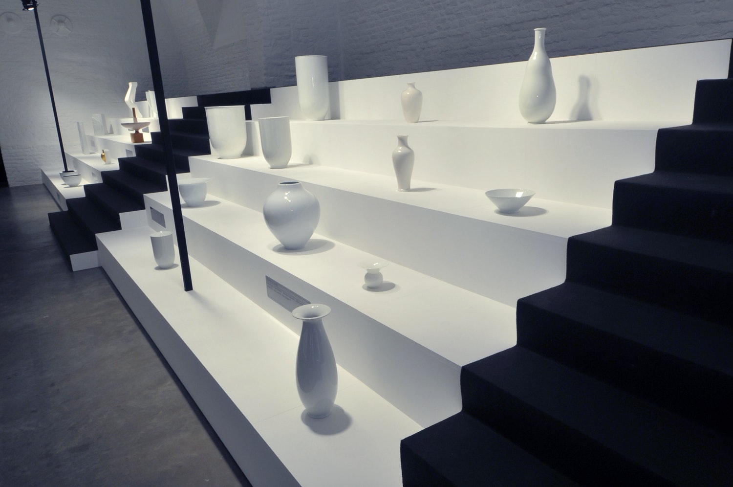How do you present objects made of porcelain in the best light? The Lausanne-based designer Adrien Rovero has created a scenography for porcelain objects from the factory in Sèvres which attests to his ability to competently handle light and space. For the exhibition 'Feux Continus', it is mainly light that is used to modulate the objects. Using a series of floodlights to illuminate the exhibits, he cleverly defines light and shade zones and with variations in light also determines the atmosphere in the rooms of the Belgian 'Musée du Grand Hornu'. It is Adrien Roveros' ambition to create maximum effect with minimal means. For his scenography is not to distract from the exhibits. In a first room, he sets up grandstands. On the staircase landings, the exhibits are placed like spectators in an arena, illuminated by strong and direct headlight beams, just like in a stadium. In a second room, where larger sculptural objects are shown, oversized lamp shades are suspended from the ceiling, creating pleasantly intimate islands of light. In the next room, only white curtains can be seen at first, lighted by floodlights on tripods. In this way, viewers are made curious to find out what is happening behind the curtains. Behind them, on a huge table, objects are shown ('La table de Sèvres'). At the same time, the curtains filter the floodlight, thereby ensuring an unusually bright yet soft light. Depending on what is suitable, Adrien Rovero creates very different lighting and room atmospheres which he adeptly varies across the 1,600m² exhibition area. Created by 40 artists for the factory in Sèvres, the porcelain and ceramics designs are shown to their best advantage. Rovero's wide-ranging design repertoire successfully combines the simple with the unusual and the well-known with the unexpected. The fact that his scenography invariably succeeds in showing the exhibits to best effect is especially impressive. The designer who has been teaching at the ECAL in Lausanne for two years and who was already a winner in 2007 is awarded a prize for the second time.