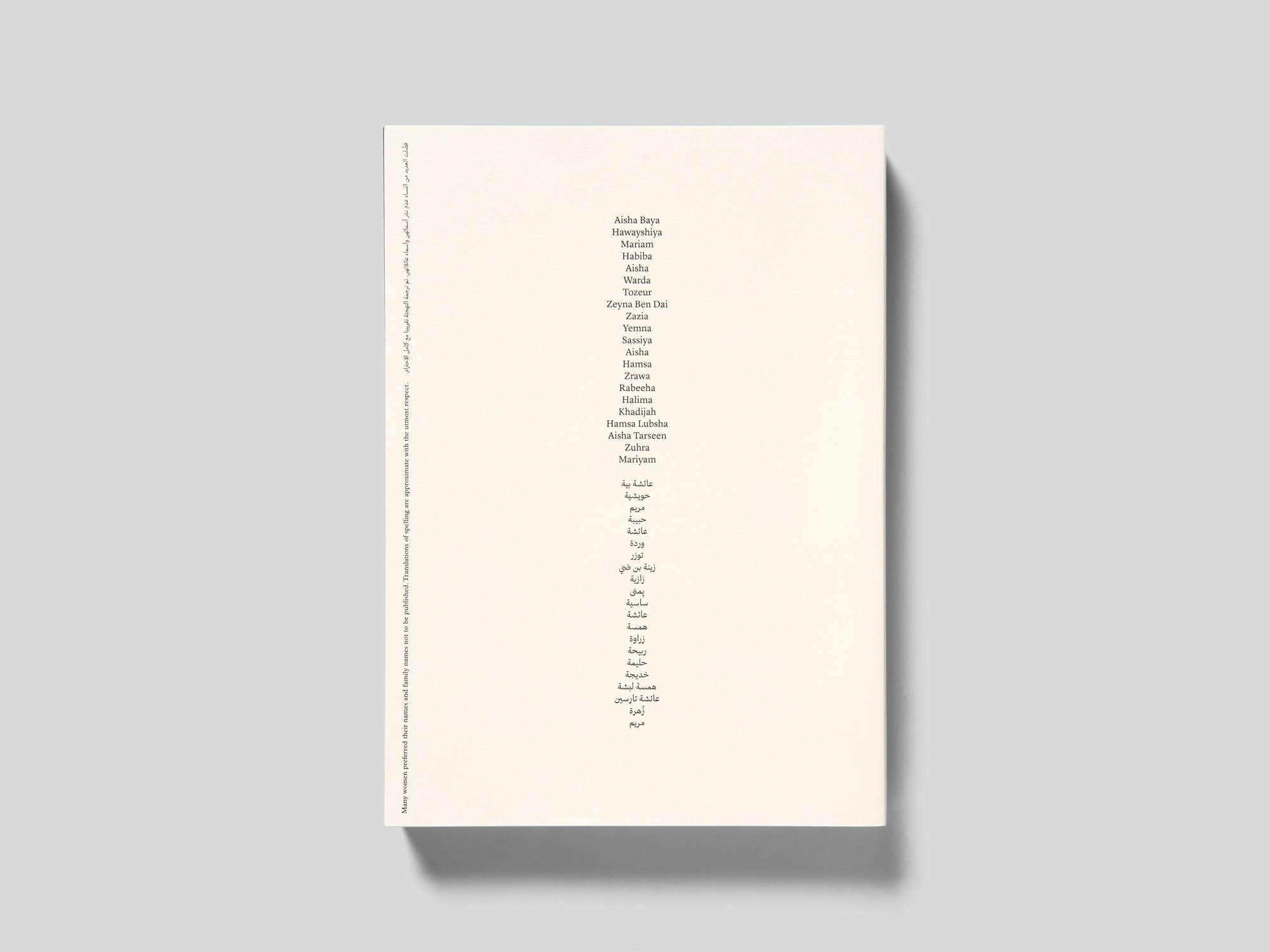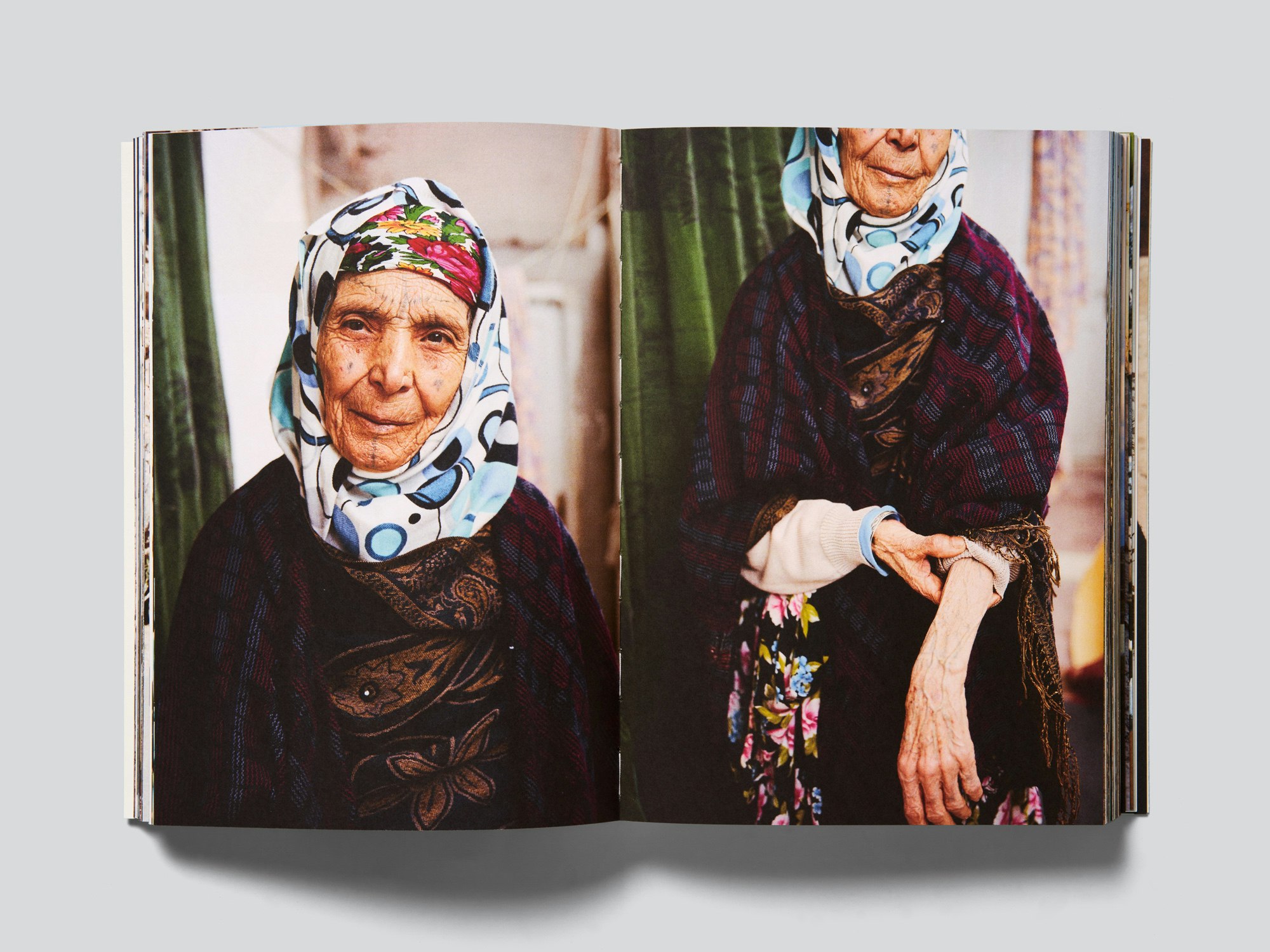 The radical picture editing in this heavy, medium-format softcover photo book results in 320 full-page colour images effectively telling their own story. The Yemeni-Egyptian-American photographer and film-maker behind the book, who studied in Zurich, travelled through remote regions of North Africa photographing older women with ornamental face tattoos. All of the women are depicted multiple times in repetitive series of images, interrupted by equally repetitive images of their homes and of the evocative, oftentimes stark landscapes. The images appear to be ordered chronologically through the photographer’s journey, and the absence of captions or commentary produces an unmediated documentary record largely free of selection or interpretation but that through repetition establishes a reserved connection. Some background information is provided on five slim inserts on translucent paper, printed in Arabic (mostly at the top of the page) and English (usually at the bottom). The photographer explains, for example, how she was inspired by her great-grandmother’s tattoos to discover more about these facial decorations, which are a form of code often used by illiterate women. In light of such silent communication, the very direct presentation of the photographs can be read as the postcolonial gaze for once refraining from any attempt at interpretation, and exposing itself through its very randomness in much the same way as the portrait subjects do. All of the decisions, from the choice of paper to the handling of the bilingual content and the careful typography, support the photographs. The cover image is an old photograph of the great-grandmother who was the catalyst for the trip, but it was not taken by the photographer herself – another radical decision.
