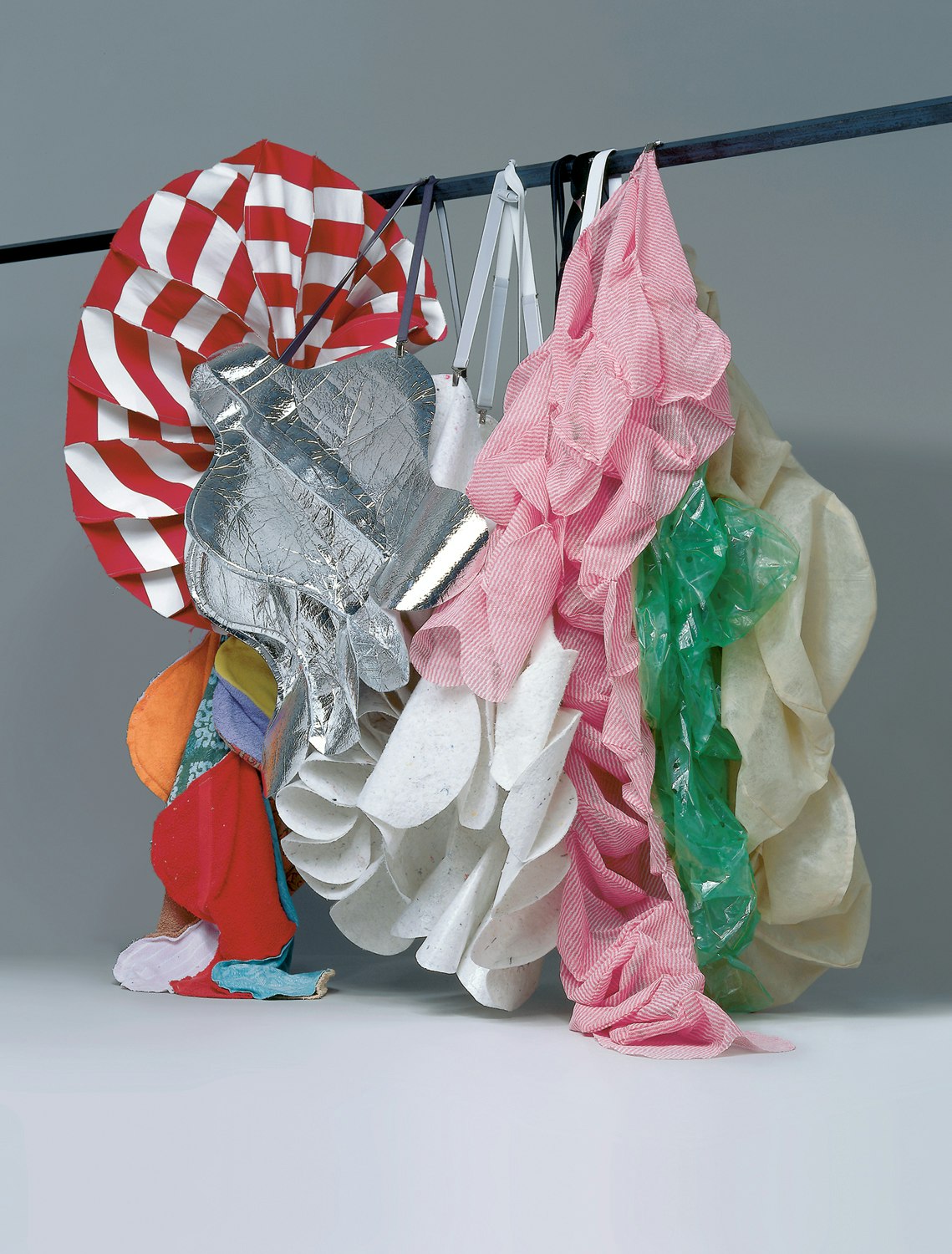 The 'Anschnallen' collection is a humorous challenge to the pleasure we take in disguising ourselves, stage directions for a play whose text we happen not to know. Only someone who looks more closely will notice the conceptual nature of the items to be fastened on. They are always based on symmetrical forms, duplicated and sewn together. As well as having the character of experimental objects, the 'Fasten it' collection also convinces as a set of unique sculptural items. And for the time being, this courageous designer who loves to play is leaving open the question of whether this experiment will lead to more conventional designs for everyday wear.