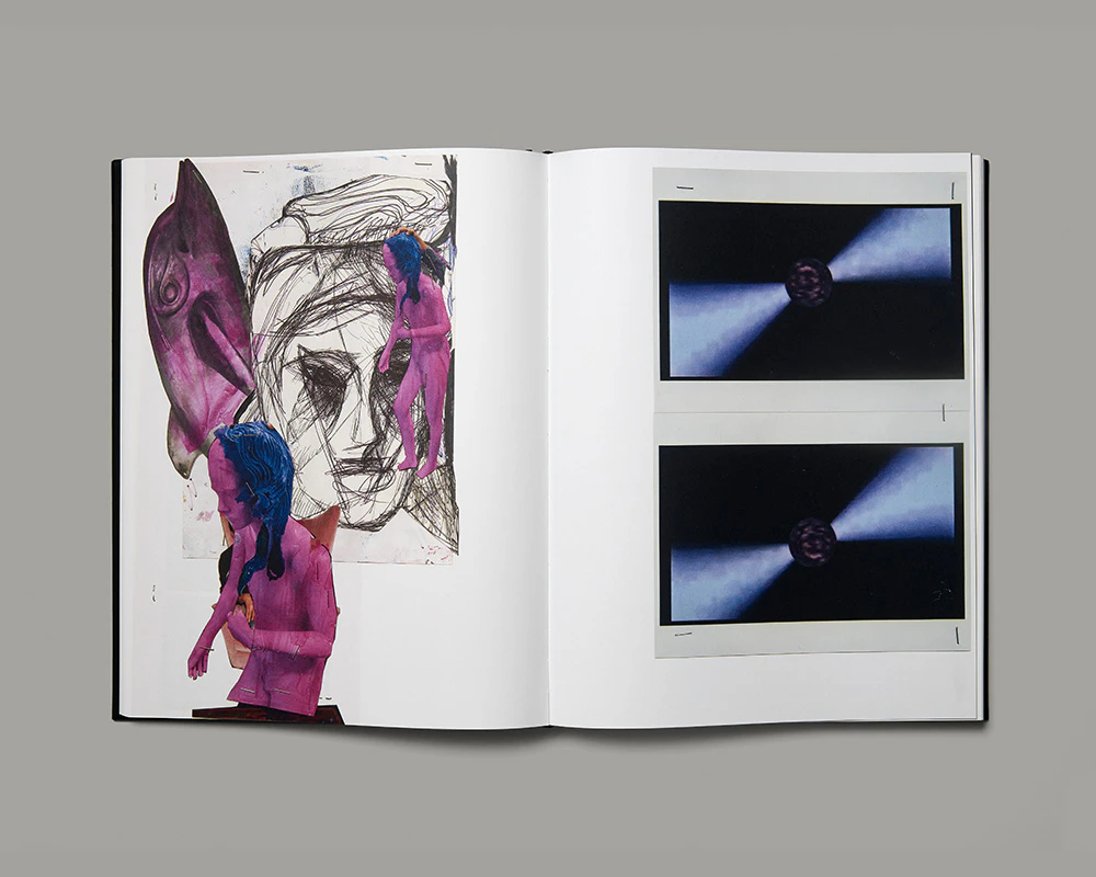 This extensive, large-format catalogue raisonné of the oeuvre of Andro Wekua, an artist originally from Georgia, presents the works to optimum effect thanks to its restrained design and excellent image sequences. The red-and-black hardcover bears a screen-printed collage beneath the embossed artist’s name and comes across as strident; inside, however, the design is calm and spacious, with large areas of white. The first section reproduces double pages from one of Wekua’s current sketchbooks on uncoated paper, each displaying a collage of between one and ten cropped images. The very extensive section that follows presents reproductions, exhibition views and details of works spanning 15 years, mostly with one or two large illustrations freely arranged on a double page. A slender, purely typographical section at the end comprises densely packed pages of uniformly typeset accompanying texts and information. The three sections are separated by a page printed in silver on one side, emphasising the strong awareness of material properties and the restrained way in which they are used. This monumental volume fits into the publication practice of the two well established galleries behind it.