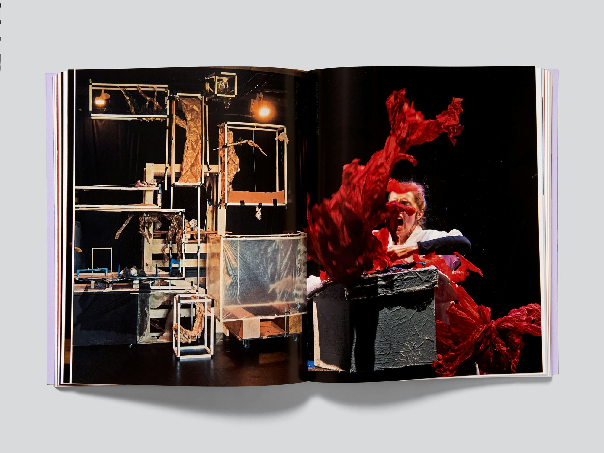 This extensive publication about the Théâtre des Marionnettes de Genève, founded in 1929, adopts a design approach that is both systematic and playful, making excellent use of the diverse archive material without copying its aesthetic. Numerous puppets are depicted in several series of objective photographs, in most cases subtly posed individually against a light grey background with their strings visible. The accompanying captions run in a slim white gutter margin from bottom to top, perpendicular to the direction of reading. Other picture sections featuring historical photographs of performances, invariably presented full-bleed, are meticulously edited. Single pages of rust-coloured semi-card facilitate navigation of the seven main thematic chapters, while photographs of hands with fingers raised indicate the chapter number. The subsequent pages presenting the chapter titles interpret the theatrical theme with typographic playfulness. The essays in each chapter are followed by an image section with several annotated archival photographs per double page, offering different glimpses behind the scenes. The only slight reservation is about the cover design, featuring a lilac background and foil stamping, as it is not wholly in keeping with the visual language used inside the book. Nonetheless, the tight command over the design and the skilful realisation prevail. This is also evident in the body text, the selection of materials and the production, which make the book a highly accessible reference work that also sits very well in the hand.
