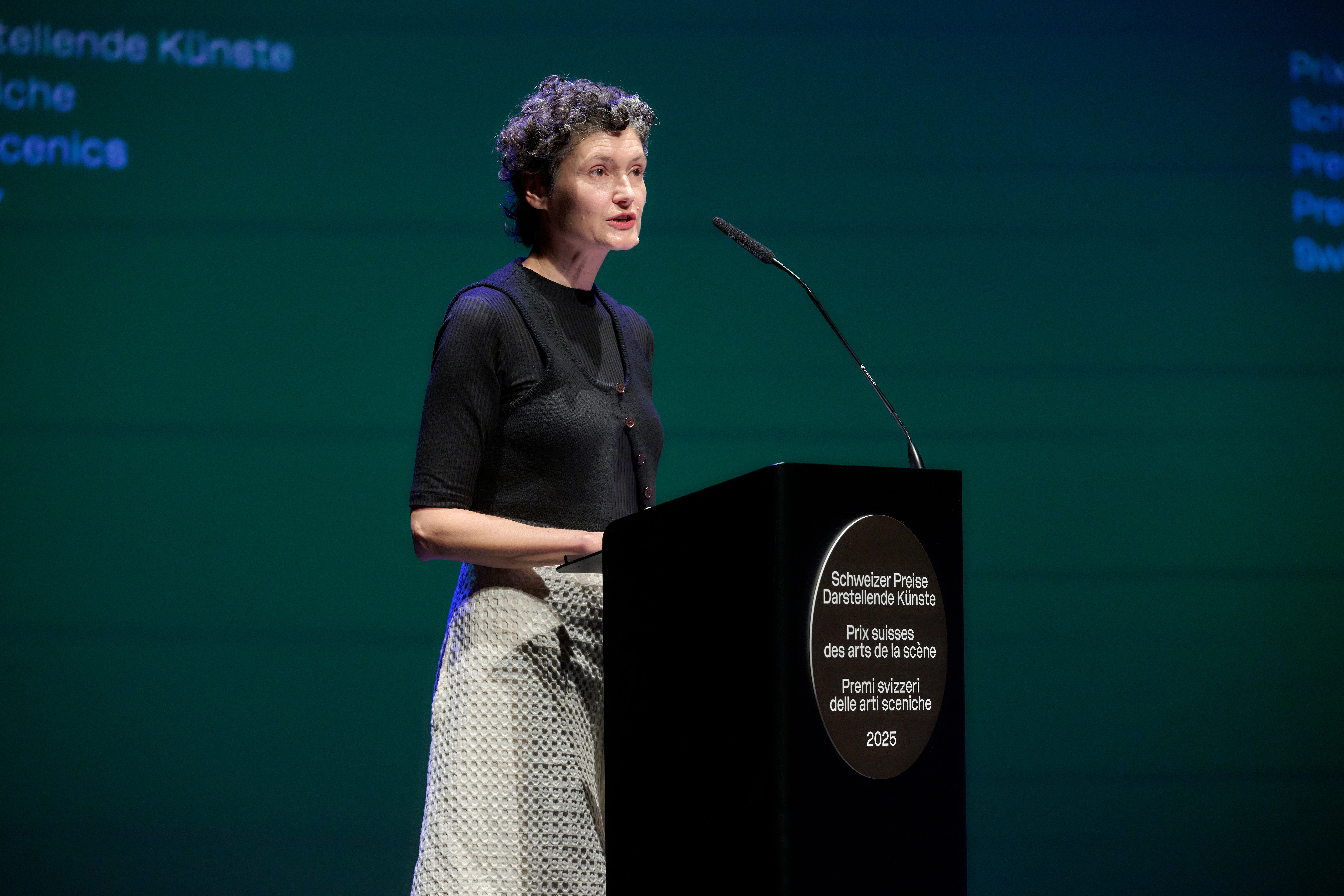 The Swiss Performing Arts Awards ceremony took place on 10 October 2025 in the presence of Federal Councillor Elisabeth Baume-Schneider at Théâtre Equilibre in Fribourg.