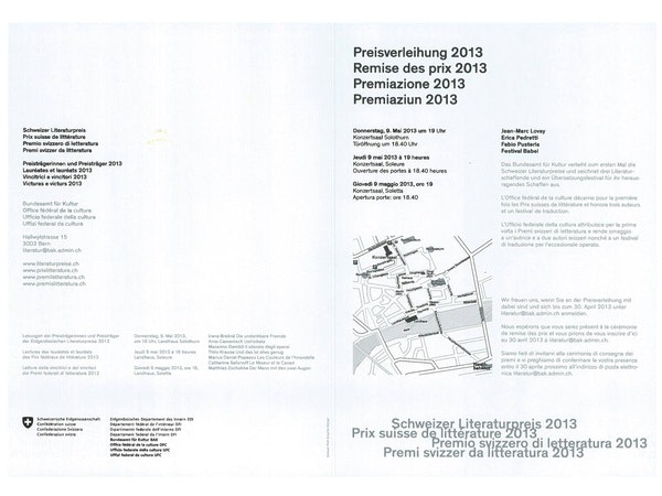 The Federal Office of Culture awarded the Swiss Literature Prizes for the second time, honoring three literary creators and a translation festival for their outstanding work. The award ceremony took place at the Solothurn Concert Hall in the presence of Federal Councillor Alain Berset.