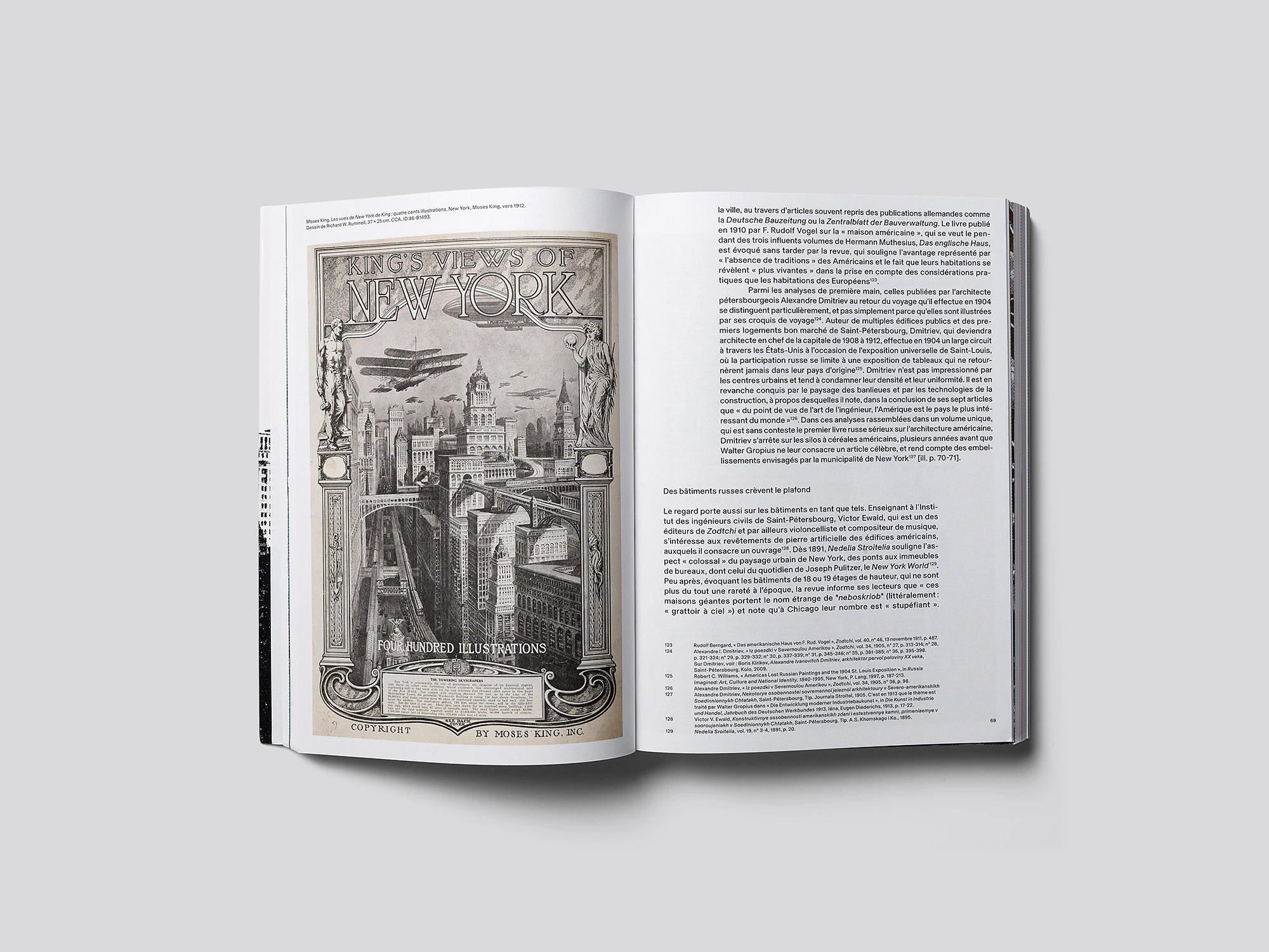 A study by the French architectural historian Jean-Louis Cohen that traces changing images and influences of America in Russian architecture from 1861 to 1991 makes its copious material easily accessible thanks to optimum structuring and organisation. The easy-to-handle volume with its black-and-white softcover is divided into six chronologically arranged chapters ranging from Tsarism and the Revolution through the various phases of Stalinism to the end of the Cold War. The pages of text include a wide range of image material from art, architecture, the media and more. Each chapter is introduced by an eight-page picture insert, printed in a different colour each time. The full-bleed images, in most cases coarsely grained, are combined here without any text to create formally fascinating and highly associative pictorial narratives, allowing the reader to pause for breath, while conveying the ambiance of the era concerned. All the design gestures are appropriate, and details such as the photos concealed beneath the folded-in cover flaps enhance the book’s attractiveness. The material is treated intelligently and lovingly throughout; it is evident that the designers are themselves keen readers. This already seems like a timeless work of reference.