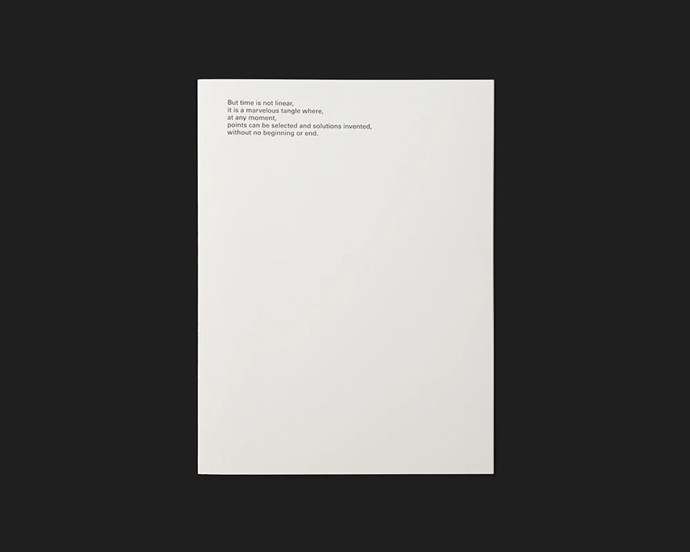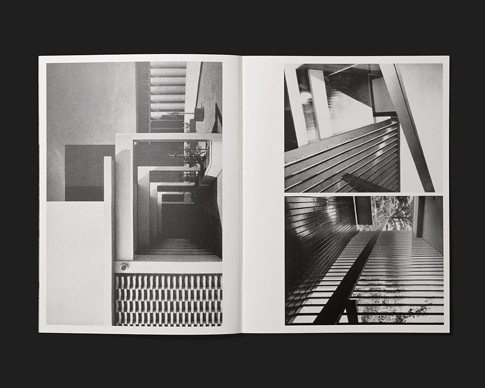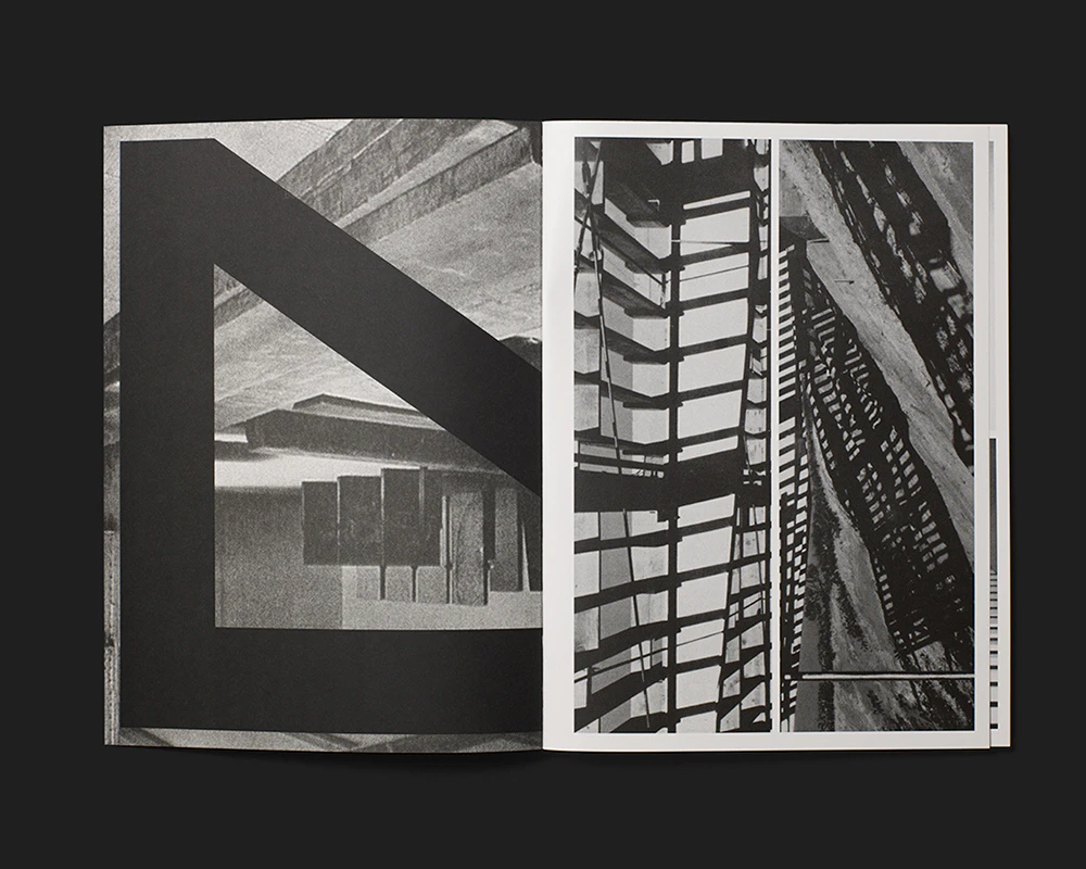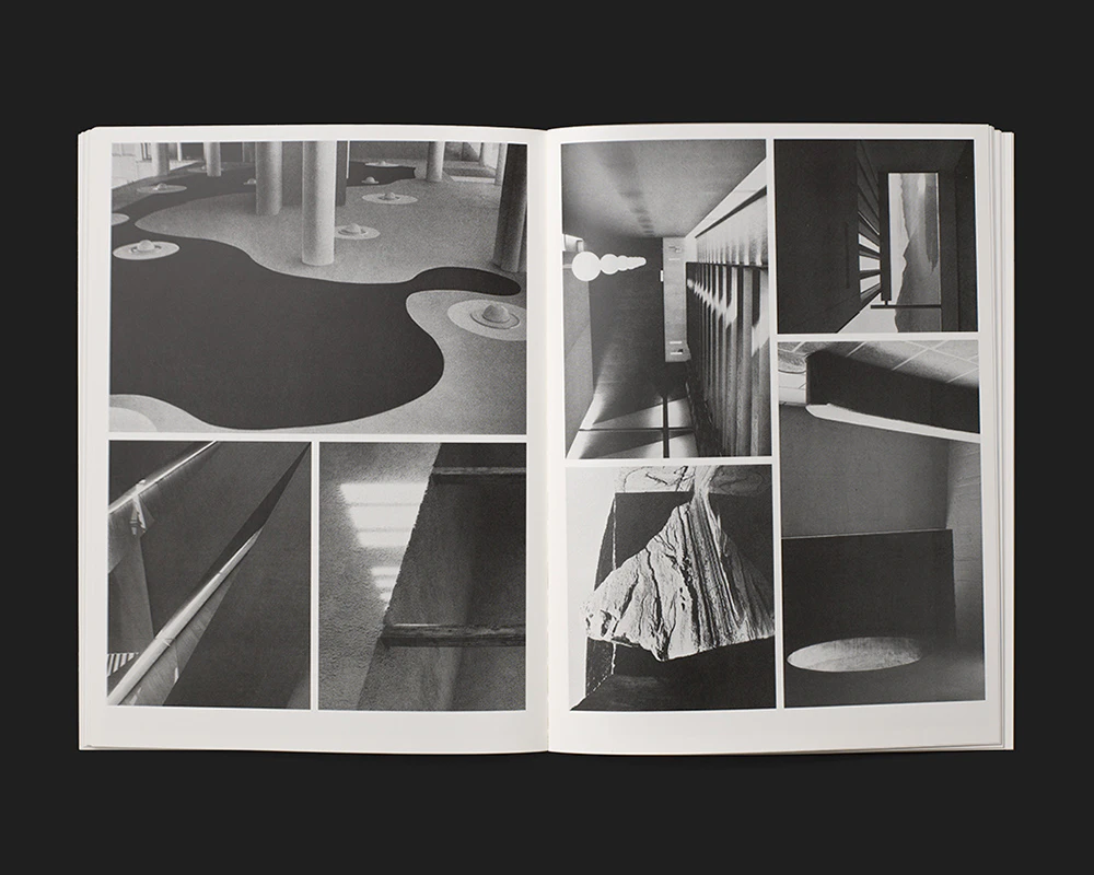 A slender, medium-format artist’s book by the Swiss Émilie Ding offers an indirect but enlightening insight into her work. Rather than her abstract concrete sculptures or geometrically patterned black-and-white paintings, Ding here presents black-and-white photos of Brutalist concrete architecture arranged to fill each page. Between two and four illustrations of varying sizes and formats are positioned on each page to leave narrow white margins between and around them. Adept formal deployment of cropped details and alternating perspectives creates a unique picture space that is sometimes reminiscent of abstract paintings and sometimes has elements of the three-dimensional and sculptural. The work can thus be seen as an agreeably unpretentious artist’s sketchbook. The text is pared down to the essentials: apart from the unconventional five-line title creating an aura of mystery in the top left-hand corner of the white front cover, the only other text is the colophon on the book’s last page.