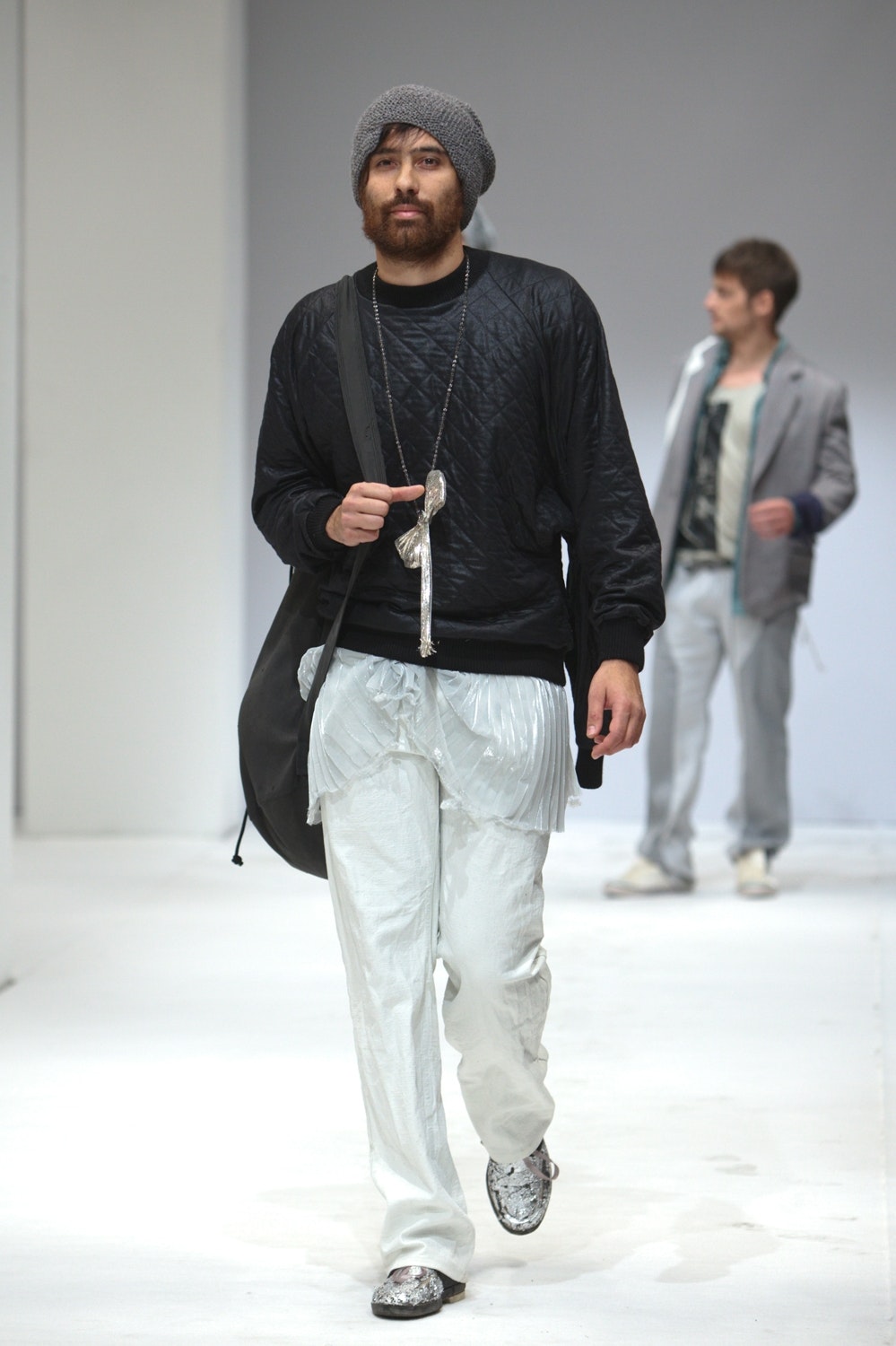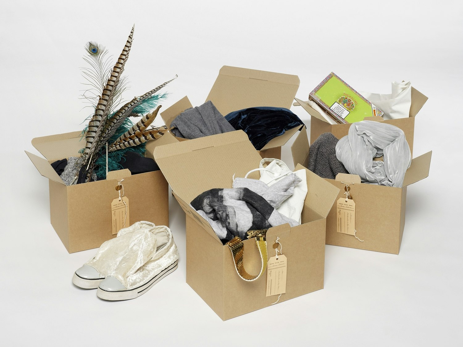 During the preparations for the second round of the Swiss Federal Design Award 2010, eight sealed cardboard boxes suddenly turned up on the table. The jury unpacked them somewhat gingerly: feathers, chains, bands, fabrics, washed-out T-shirts and, tucked right down at the bottom, men's shoes. Eventually, they plucked up the courage to try them on and, suddenly, an almost magical dynamic began to develop. All around the table, the contents of the boxes were examined and held up to scrutiny. Everybody received an entire outfit from Céline Buehrer's men's collection 'My Ex-Wife is Big Mary'.